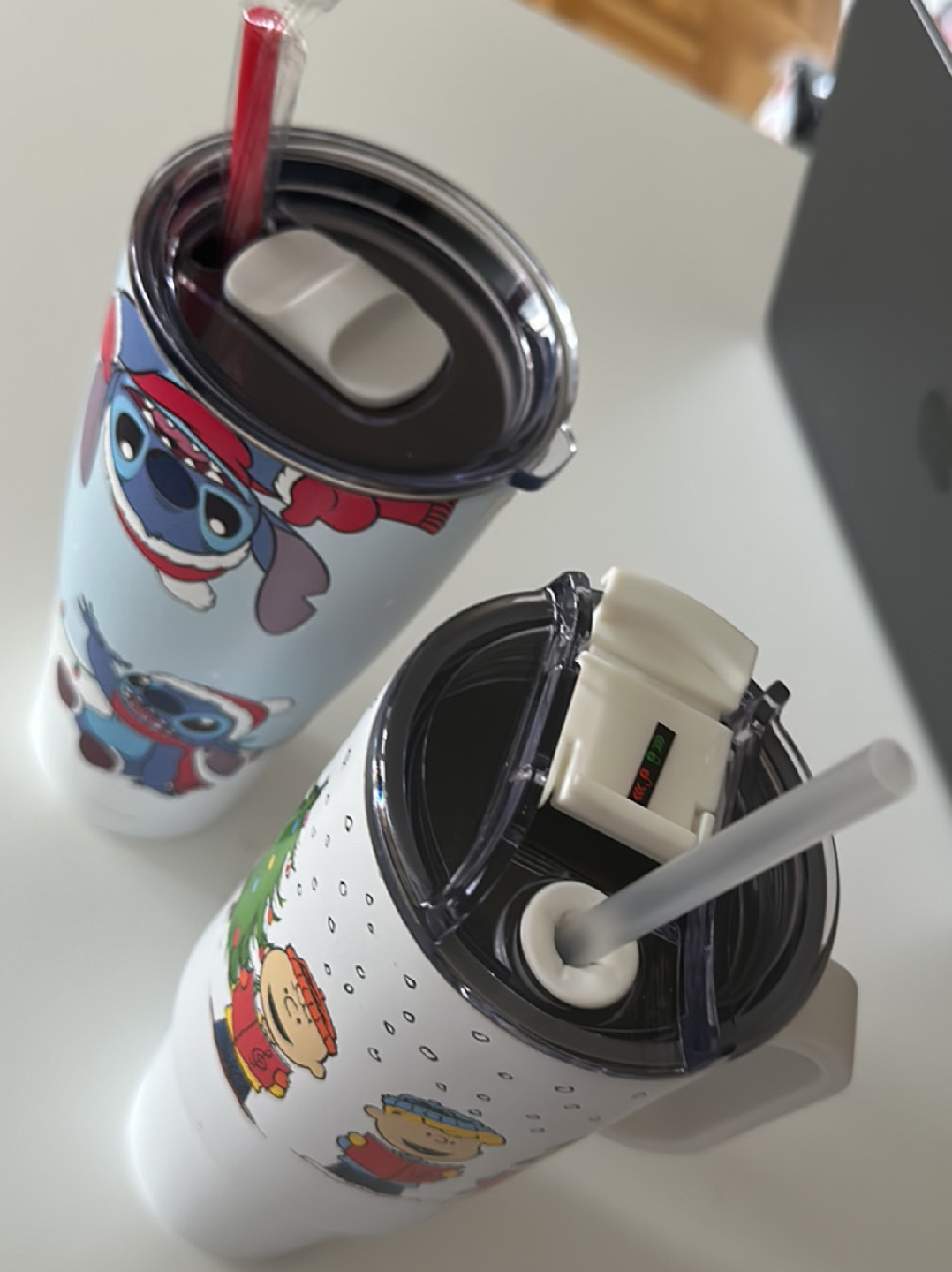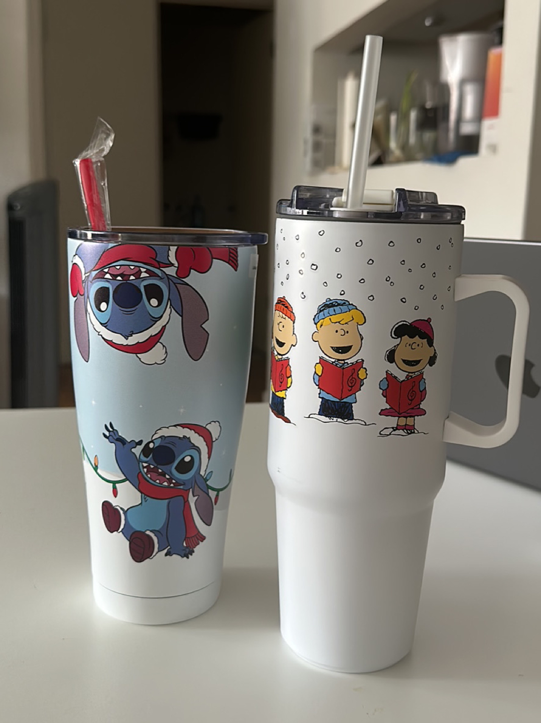 Christmas water tumblers- Snoopy, Peanuts, Lilo&Stitch bottles