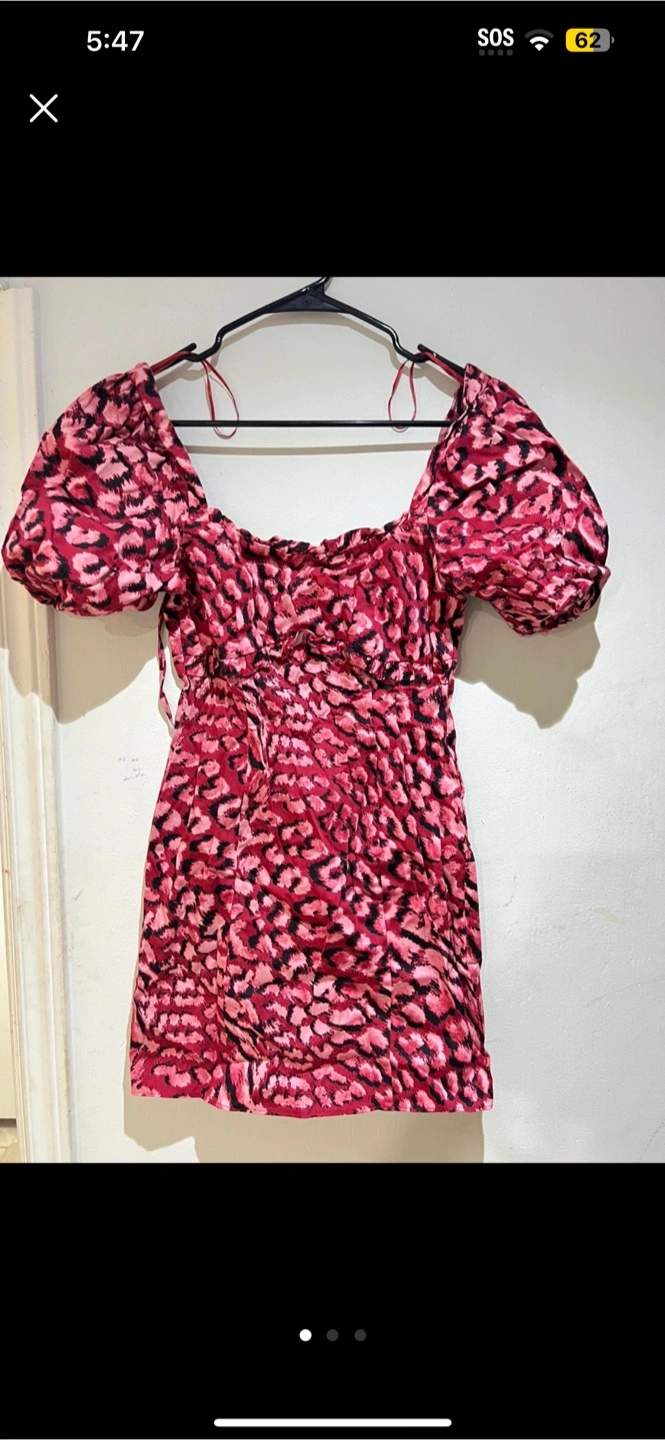 Selling a cute Topshop mini dress with a pink and black animal print! It's a size US 4 and in great condition. Perfect for a night out or a fun summer day