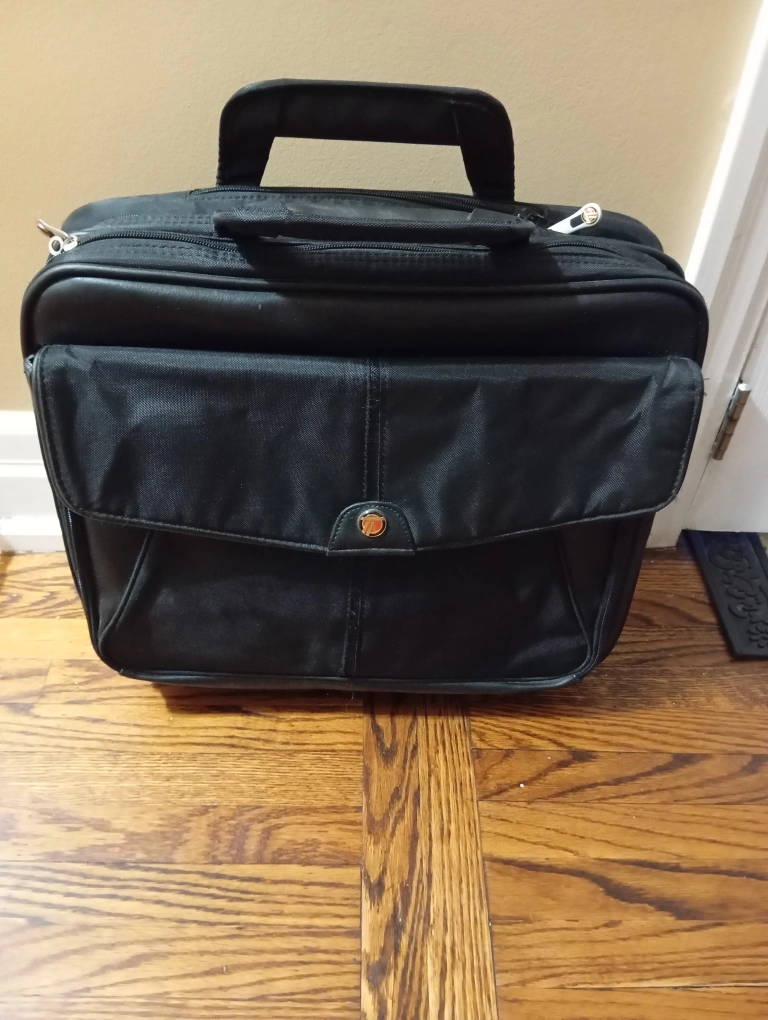 Selling a black leather briefcase in good condition. It has multiple compartments for organization, easy carrying. Perfect for work or travel!