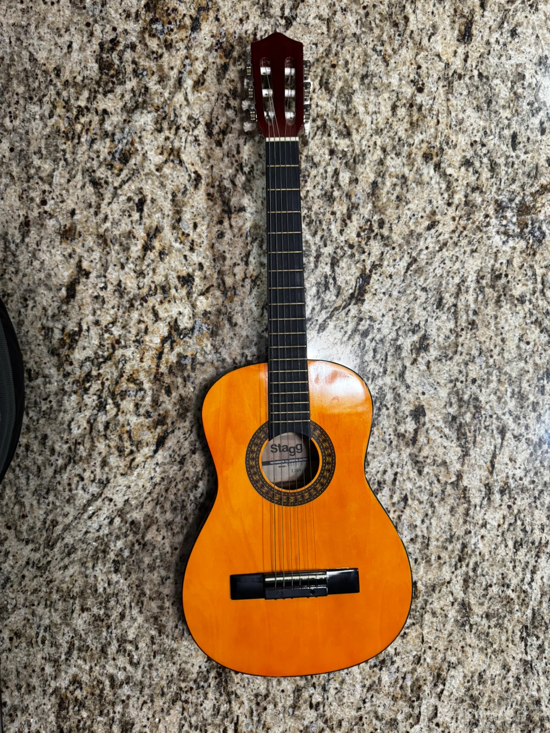 Stagg acoustic 3/4 guitar with a natural wood finish. Six strings and standard tuning pegs. This is a great starter guitar for anyone looking to learn.
