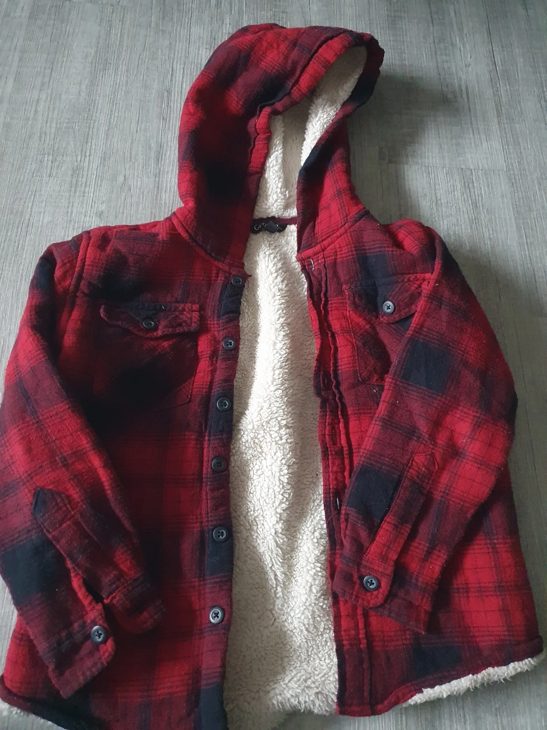 This is a blue Hot Paws winter jacket for kids. It's insulated and has a hood. The jacket and cozy sweater is size 6. Together $5