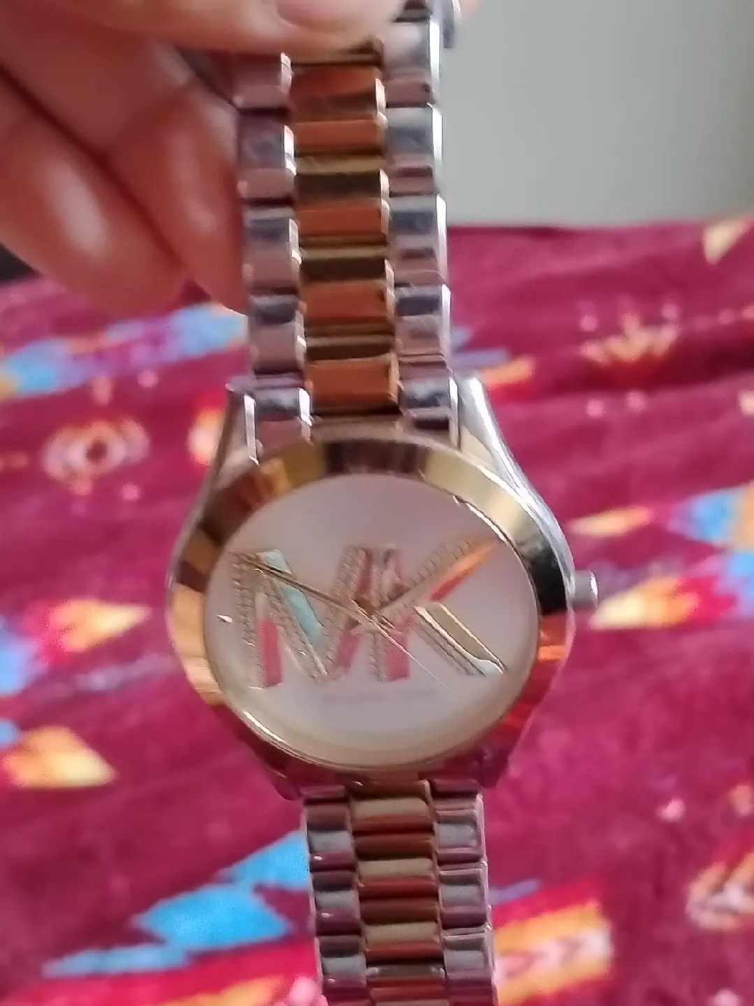 Selling a Michael Kors ladies watch, model MK-4735. It features a stainless steel and gold-tone band with the MK logo on the face. The back of the watch is also stainless steel and marked with 'ALL STAINLESS STEEL' and 'MICHAEL KORS'.