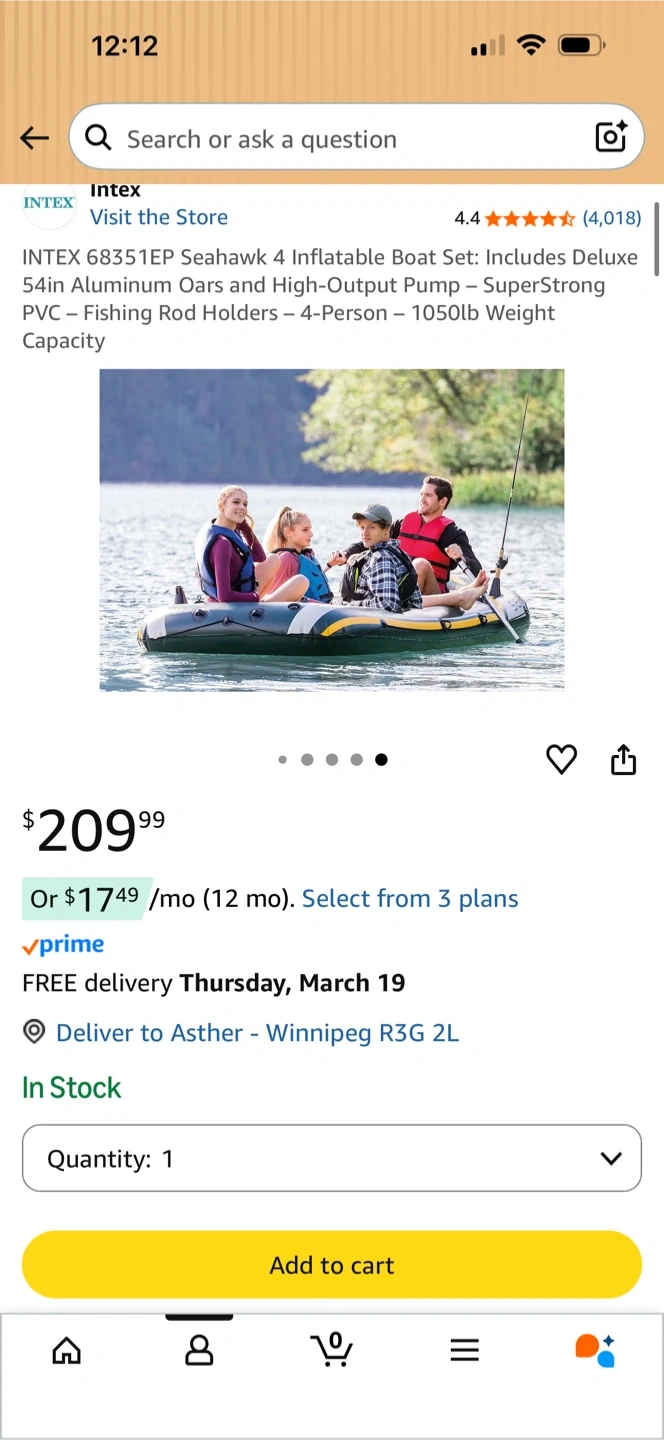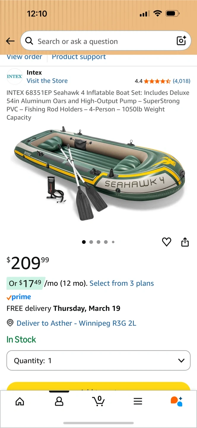 This Intex Seahawk 4 inflatable boat set includes a high-output pump and aluminum oars. It's made of super-strong PVC and has fishing rod holders. It has a 4person capacity