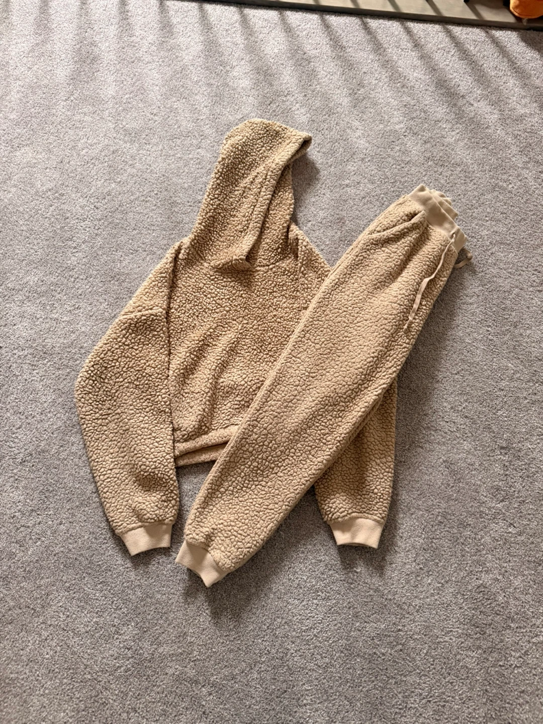 Cozy tan teddy fleece loungewear set 🤍