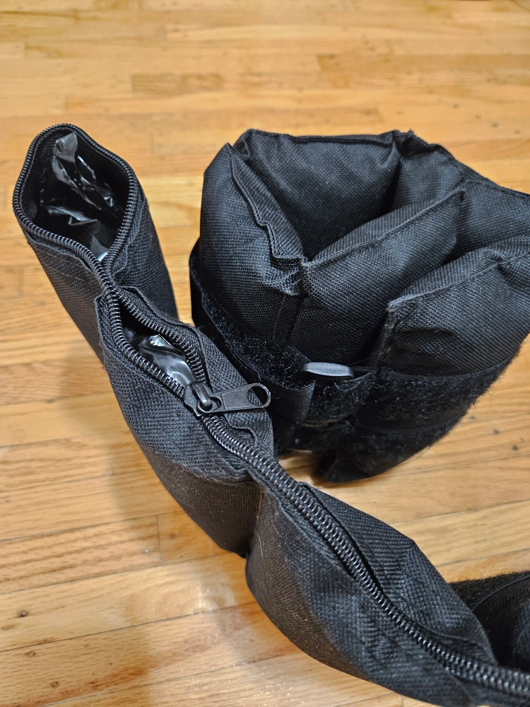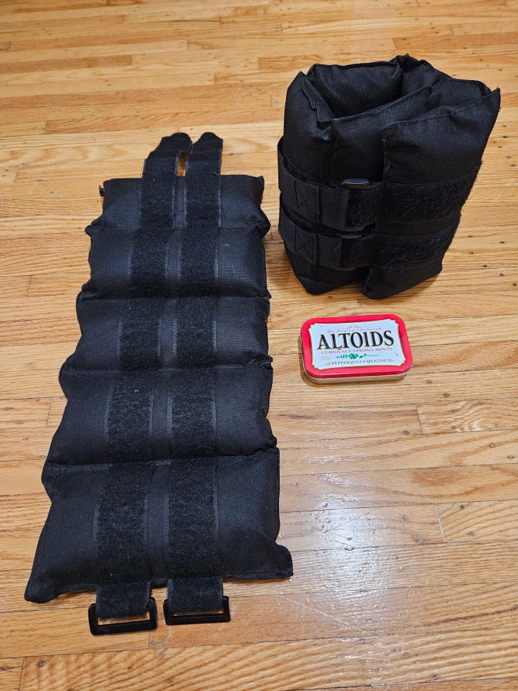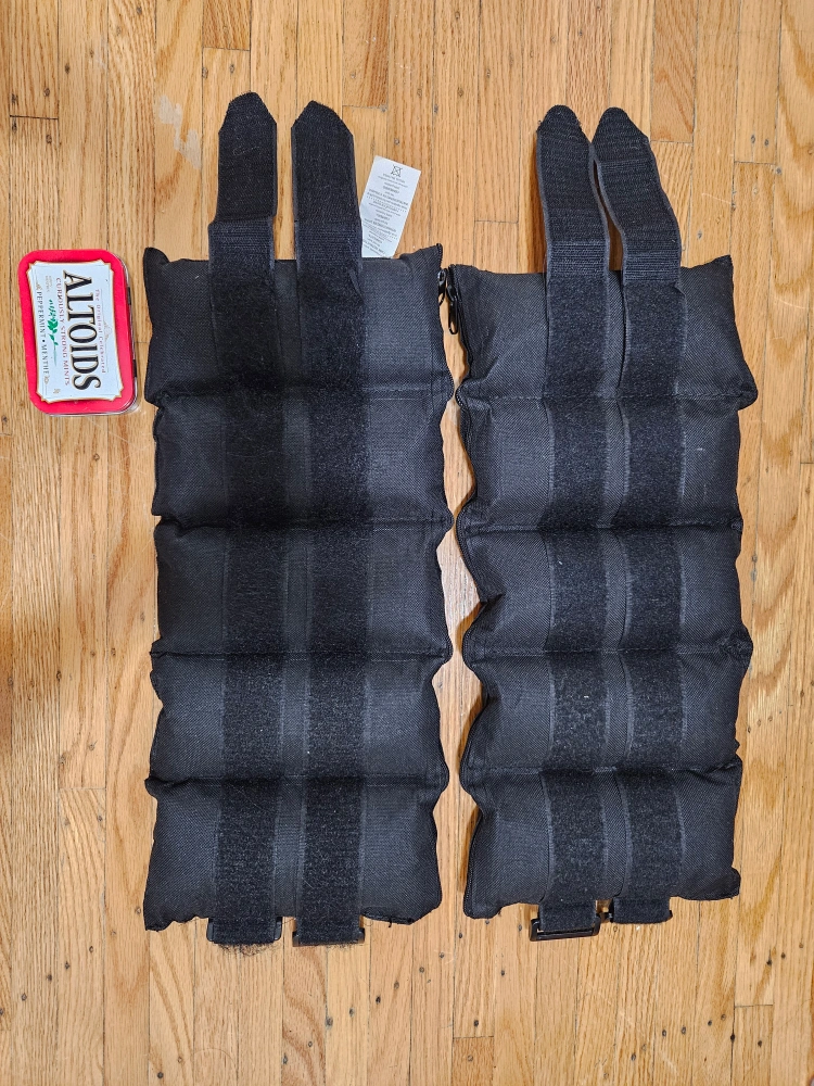 Ankle weights. 10lb each totaling 20lb (5 of 2lb sandbags each side) The bags can be taken out.