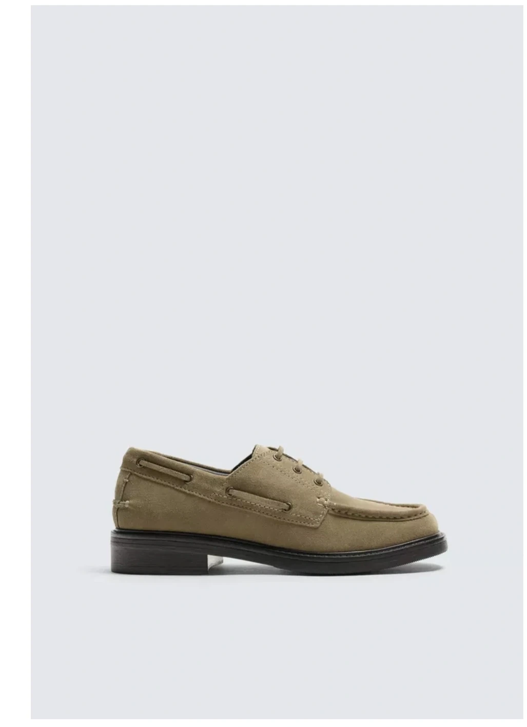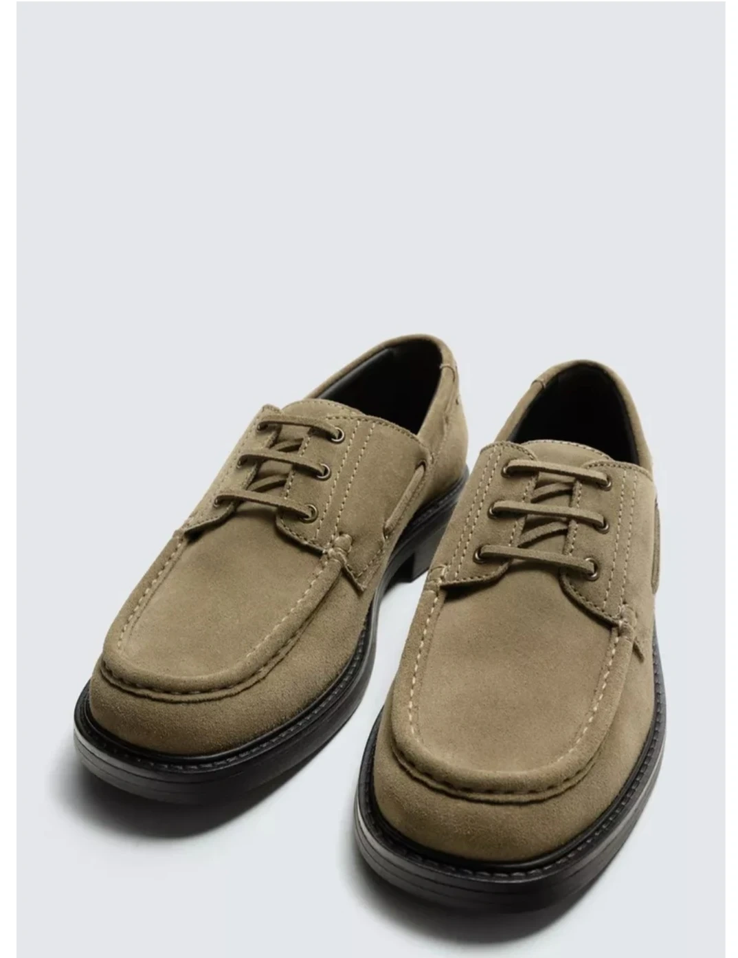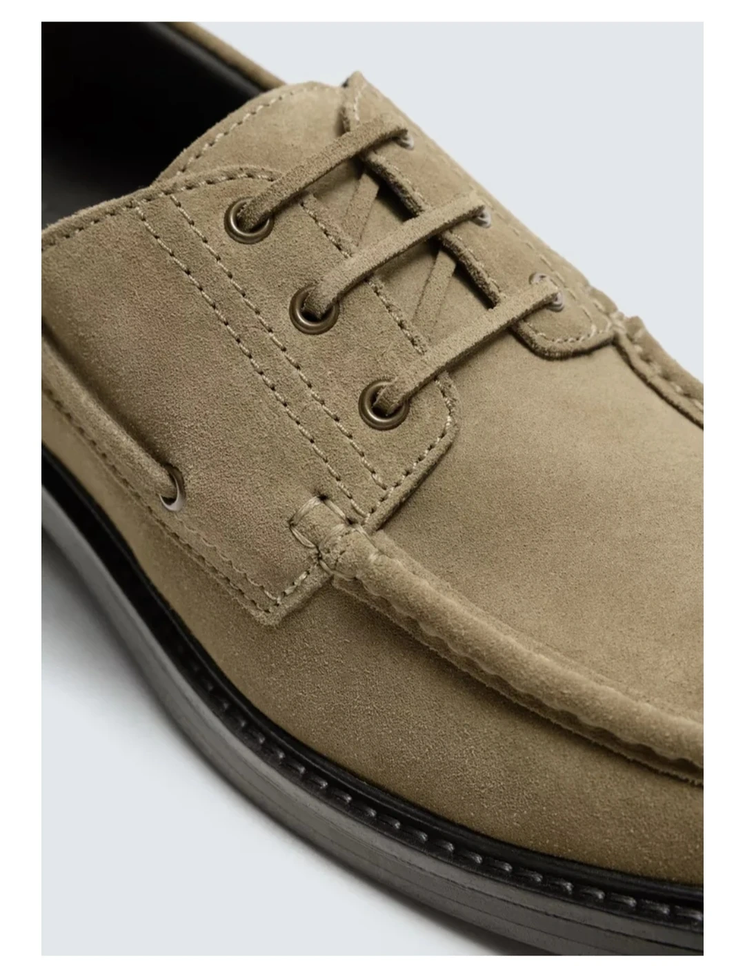 Zara Man Beige Suede Leather Dress Deck Shoes