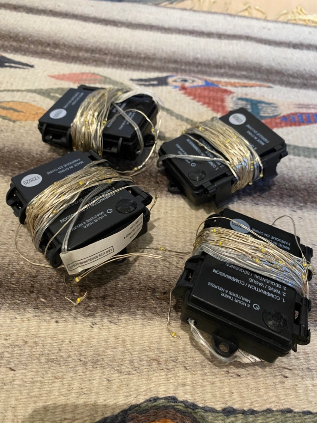 Selling a set of 4 string lights! They each have a timer and different light settings, including combination and sequential. They require 3 AA batteries to operate. 2 come with batteries already.