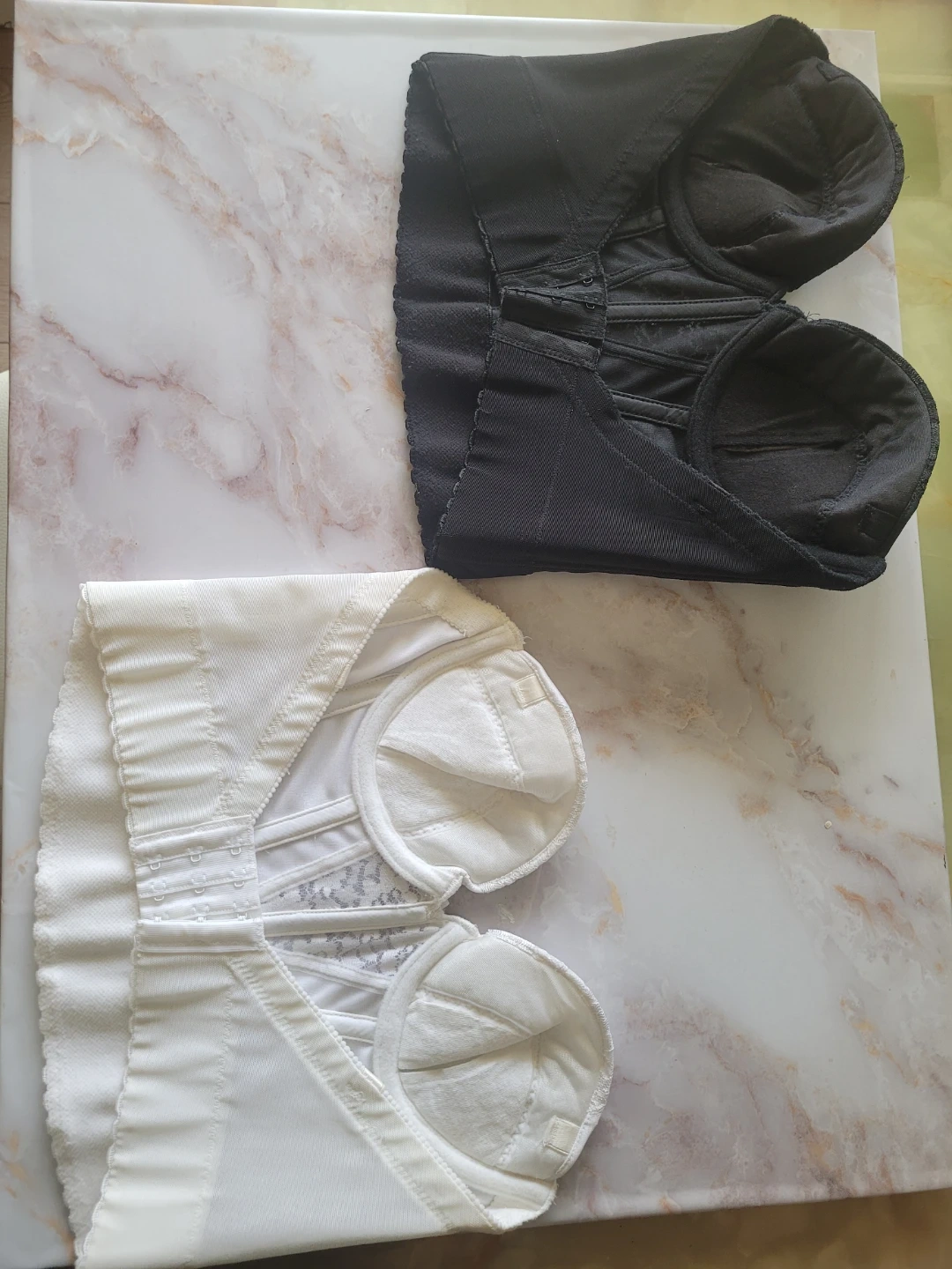 Two corset bras, style 6262. One in white and one in black. A 34A/32C/70C/34UK & 32C size. They feature adjustable straps and a hook-and-eye closure. NWOT and never worn as cup size is too small for me.