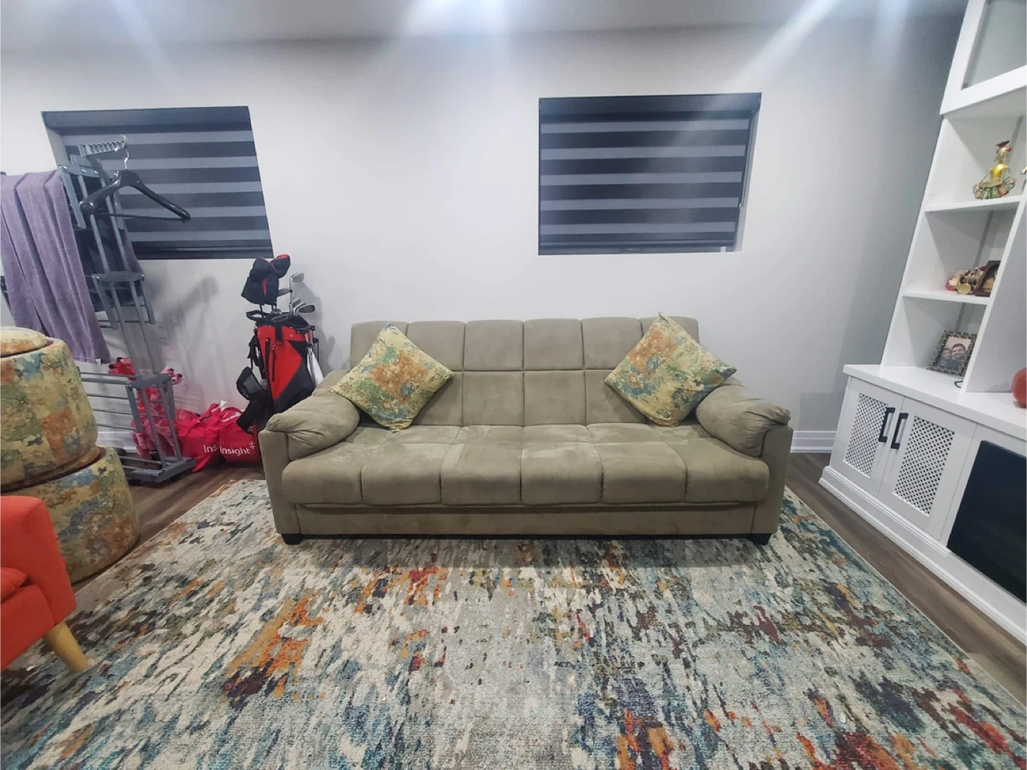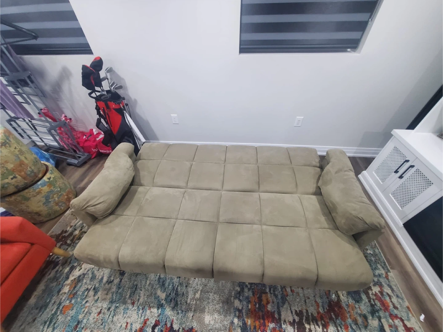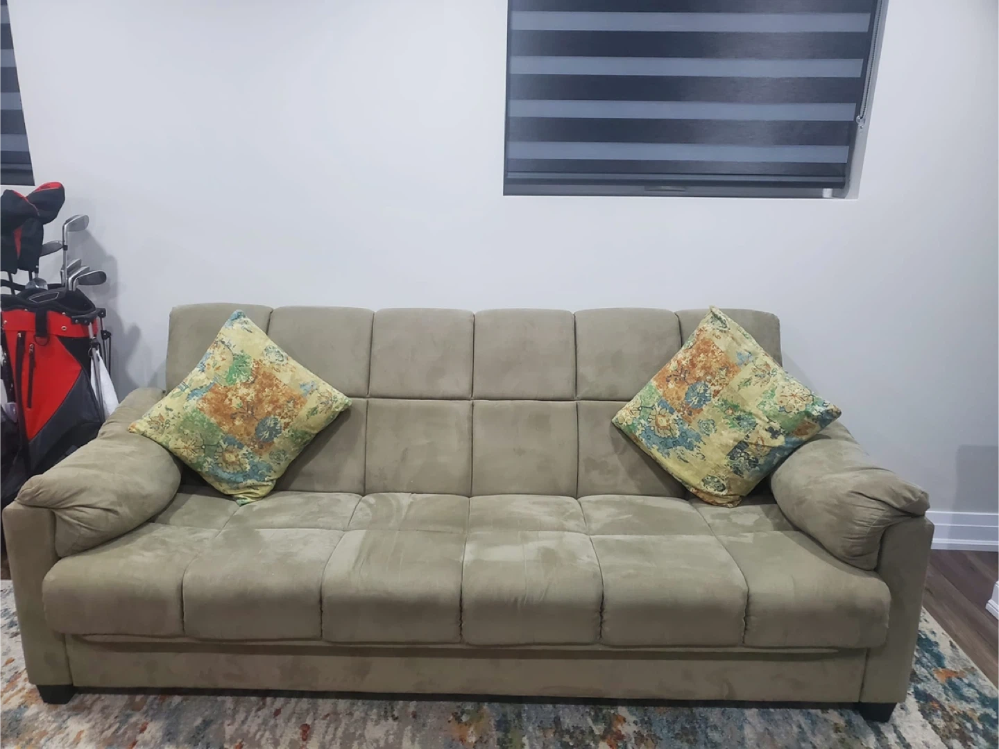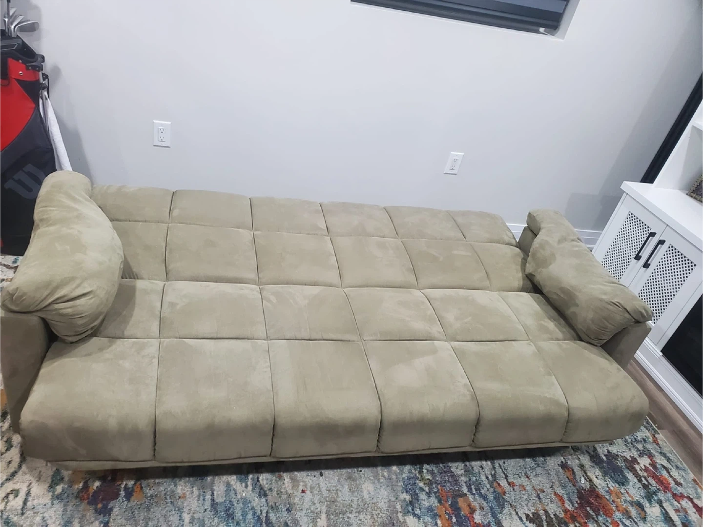 Taupe Suede Sofa Bed with 2 Pillows
