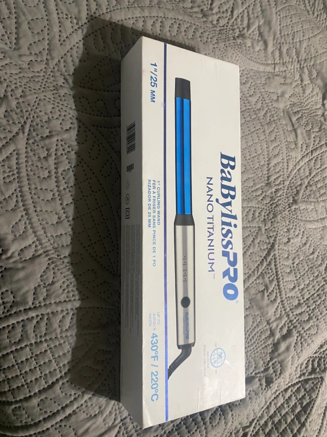 Bran new in box. This is a BaBylissPRO Nano Titanium curling wand with a 1 inch (25 mm) barrel. It heats up to 430°F / 220°C. It includes the original box.