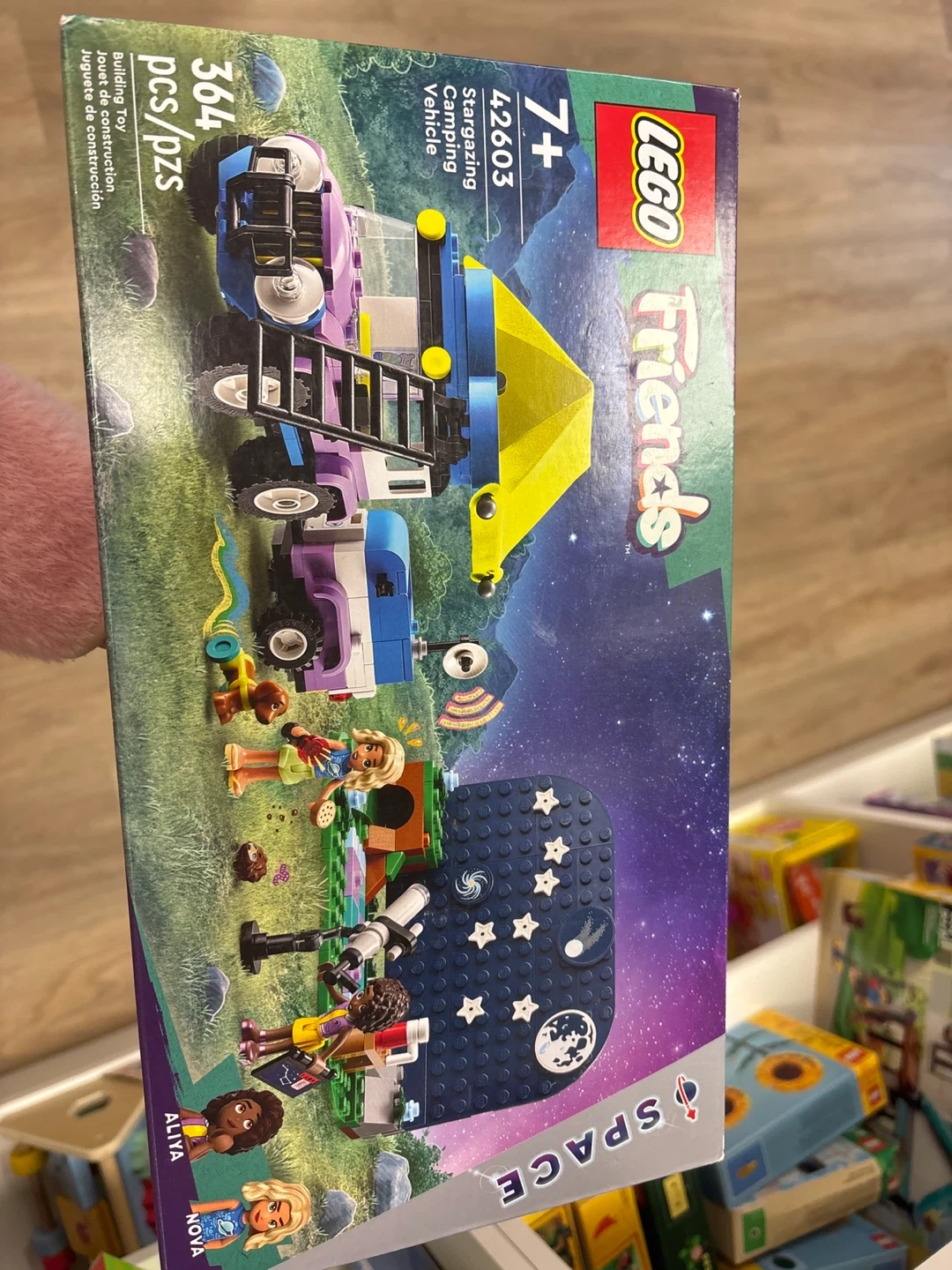 This is the LEGO Friends Stargazing Camping Vehicle set, model 42603. It includes 364 pieces. It's designed for ages 7 and up and features a camping vehicle perfect for imaginative play.