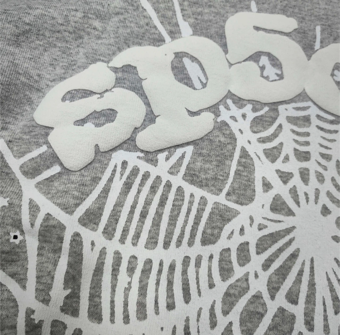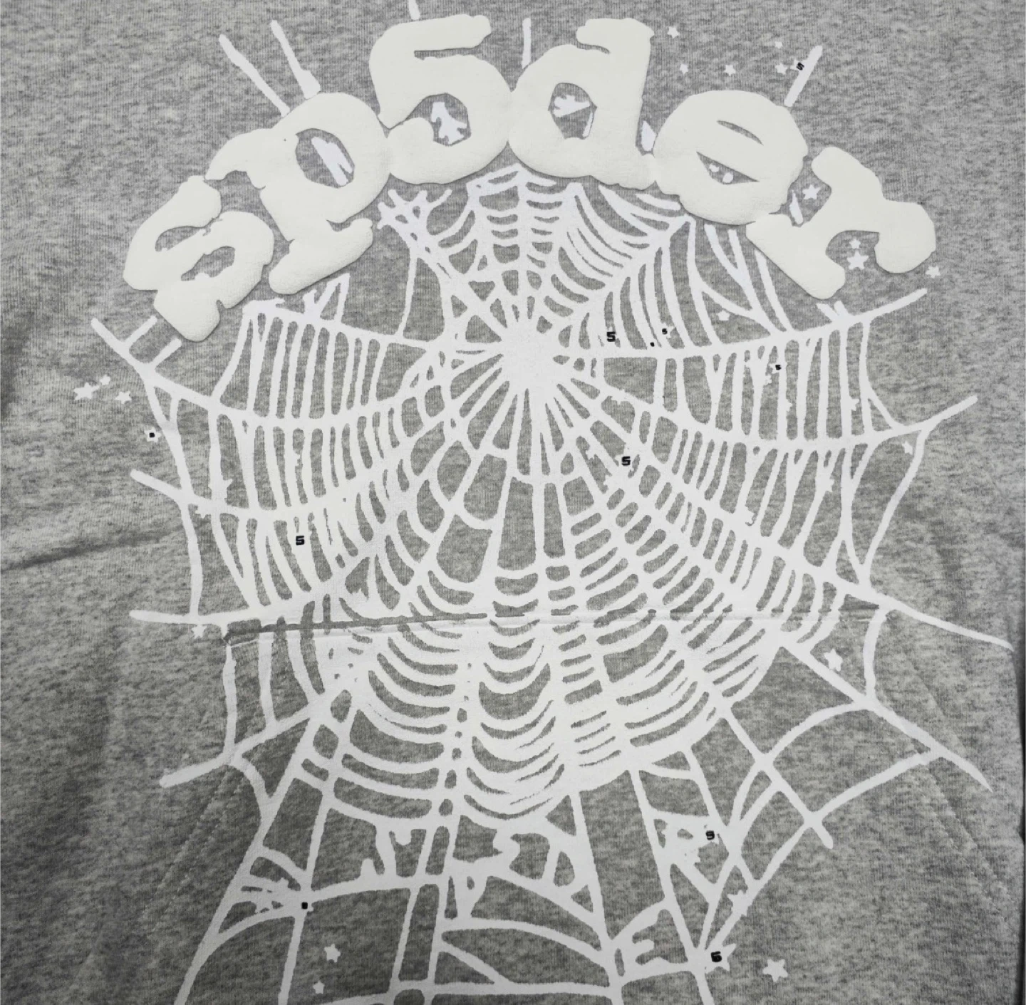 Grey Spider hoodie with a white spiderweb graphic on the front. It's made of a soft cotton blend. Great for casual wear!