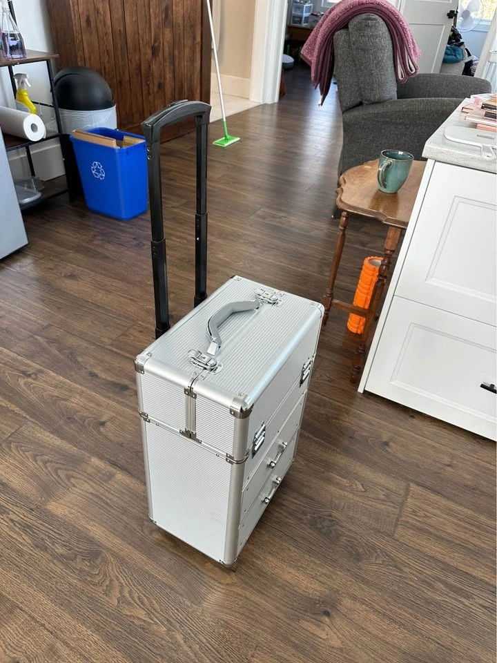 Buy & SellRolling Makeup Train Case with LockRolling Makeup Train Case with Lock$50Used rolling train case, great for makeup or other items. Features dividers for the trays and includes a key for the top lock.WHERE TO MEETCheck LocationView MapSELLERJessicaPhelpston150 reviews0 chats·1 favorites·13 viewsSEND CHAT TO SELLERHi Jessica! I’m interested in your listing.Hi Jessica! I’m interested in your listing.Get the Karrot app to chatSign In to chat