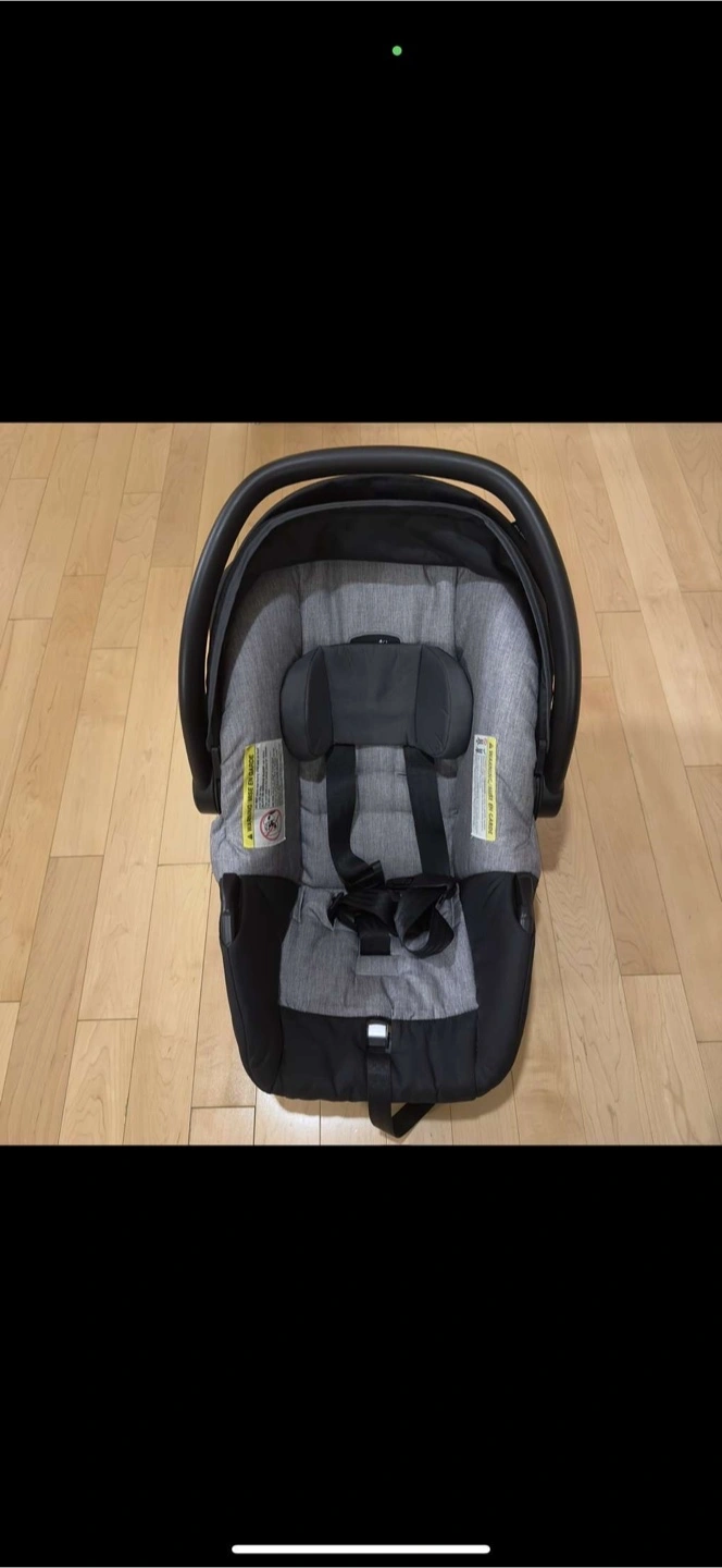 Selling an Evenflo infant car seat in black and grey. It's in great condition and ready for a new family!