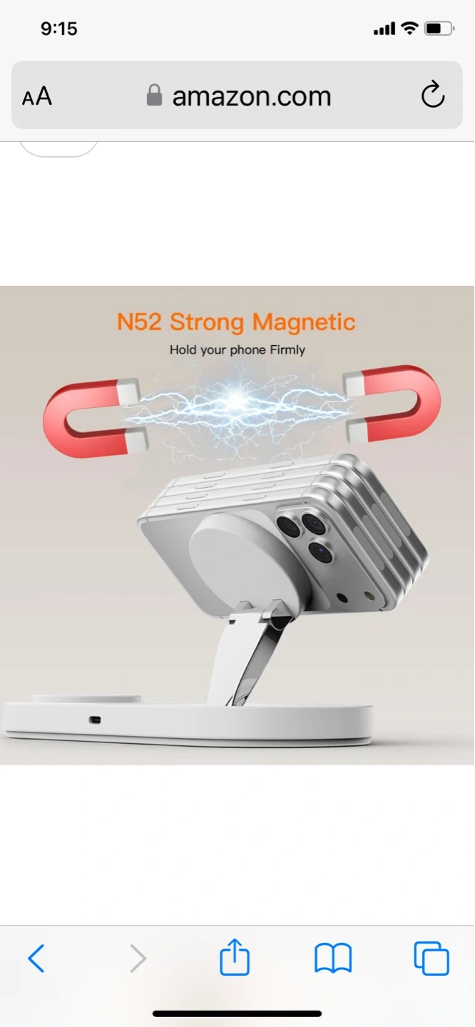 Snap and fast charging station for your Apple devices. Features auto-alignment magnetic charging with 15W max faster speed. Includes advanced safety protection. Convenient for charging your iPhone, Apple Watch, and AirPods all at once!