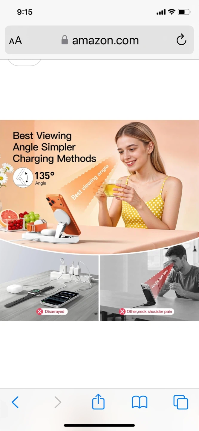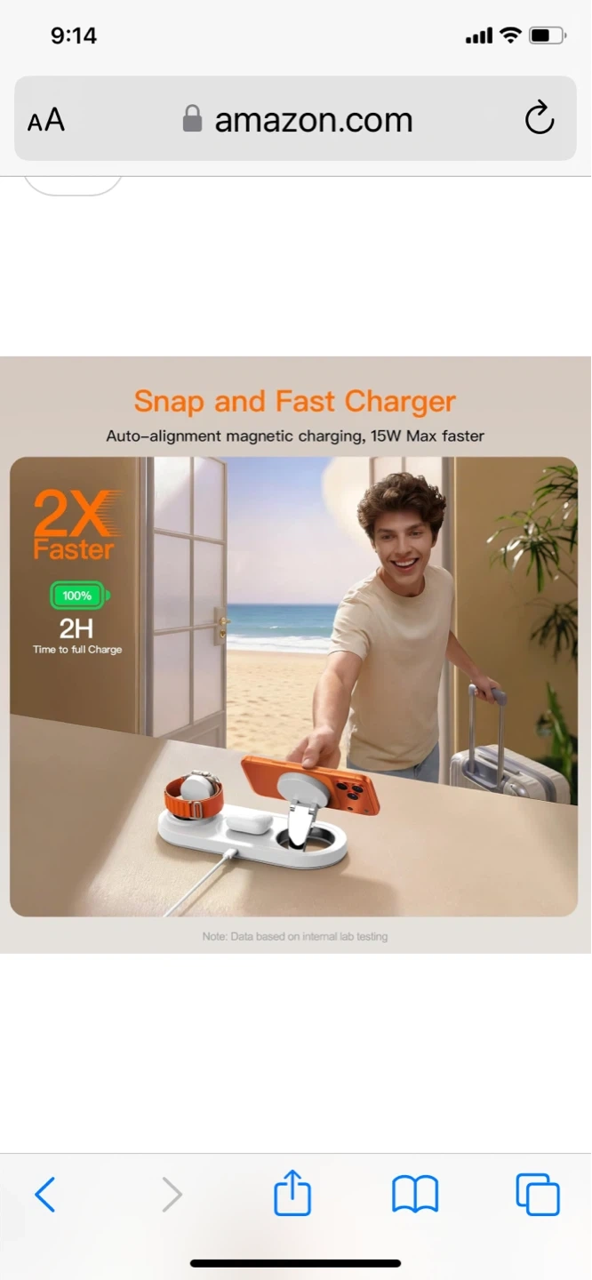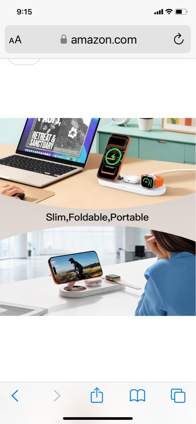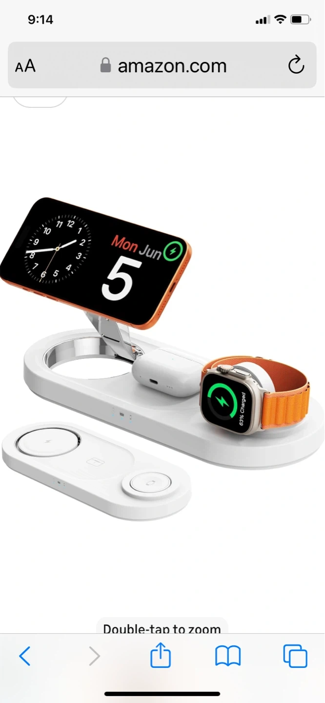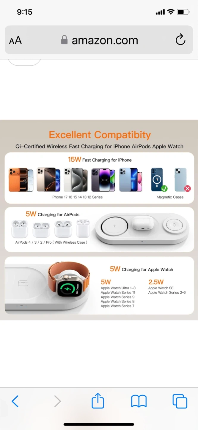 Snap and fast charging station for your Apple devices. Features auto-alignment magnetic charging with 15W max faster speed. Includes advanced safety protection. Convenient for charging your iPhone, Apple Watch, and AirPods all at once!