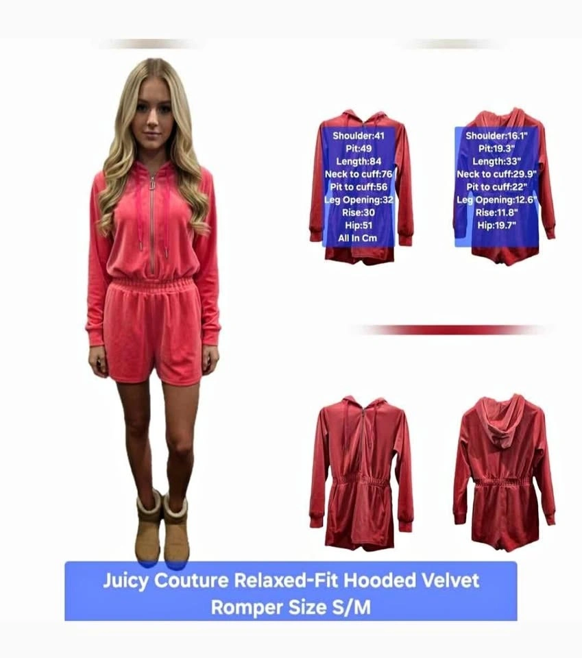 Juicy Couture Pink Velvet Hooded Romper Size S/M