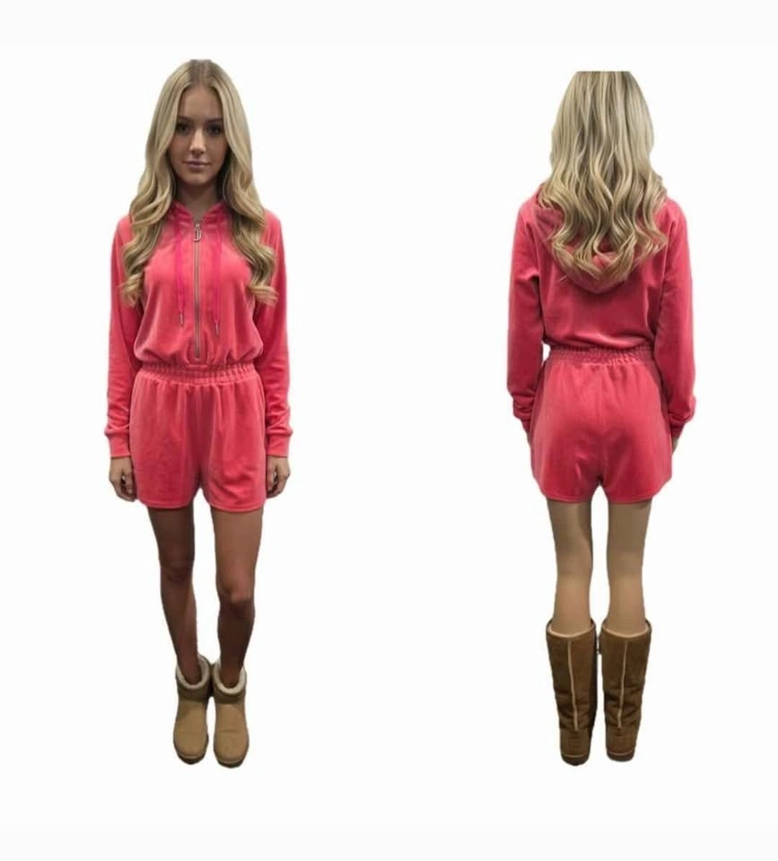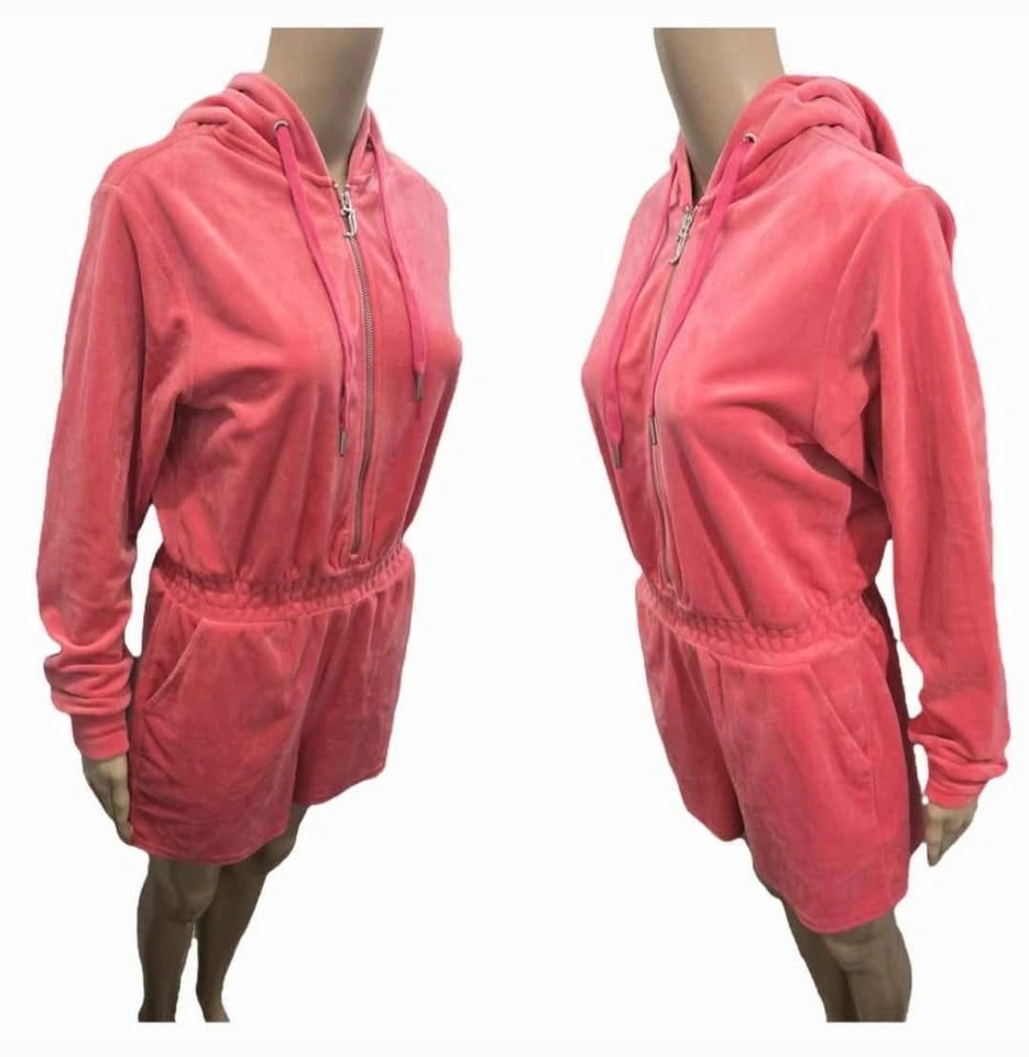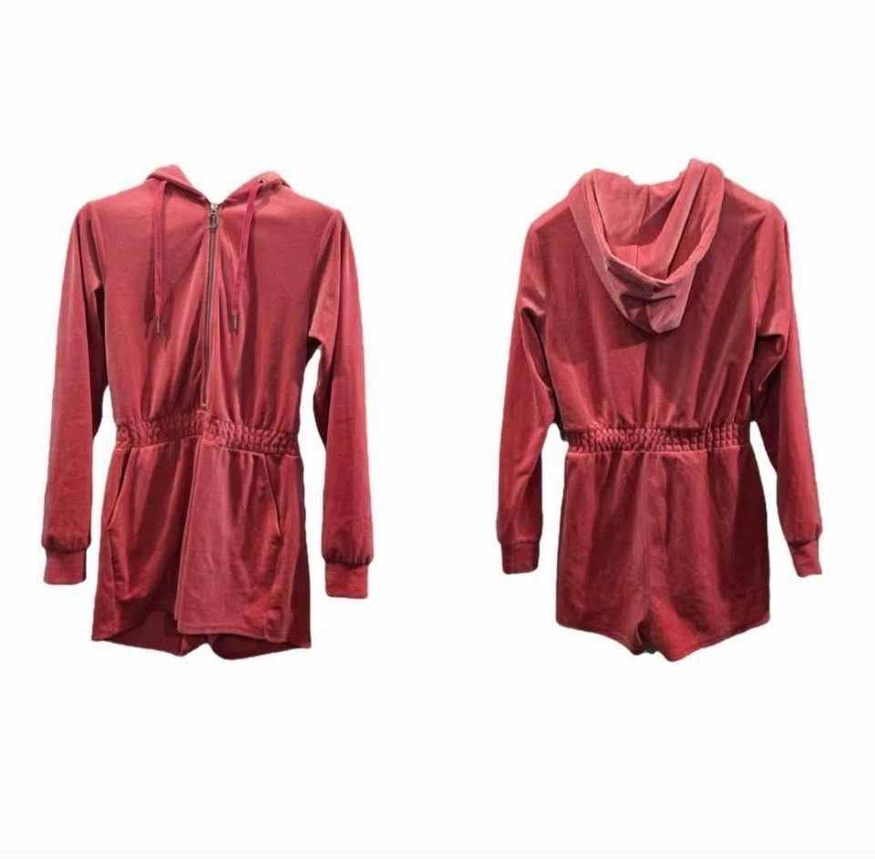 Juicy Couture Pink Velvet Hooded Romper Size S/M