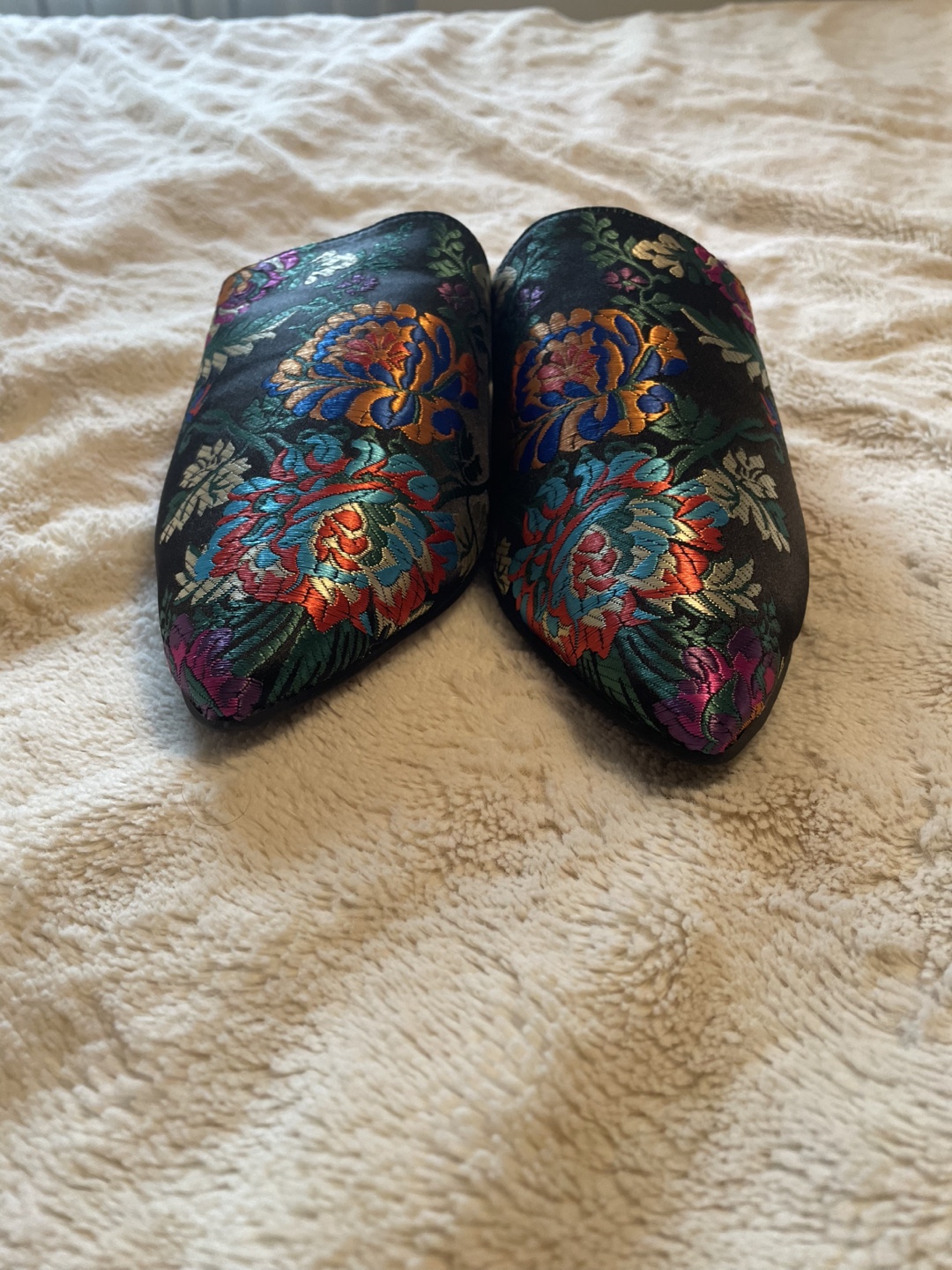 These are a pair of Lucky Brand mules women shoes in a size 9M. They feature a beautiful floral print on a black background. They are brand new never been used great condition and ready for a new home was a gift didn’t like the style too fancy cash only please no e-transfers thank you