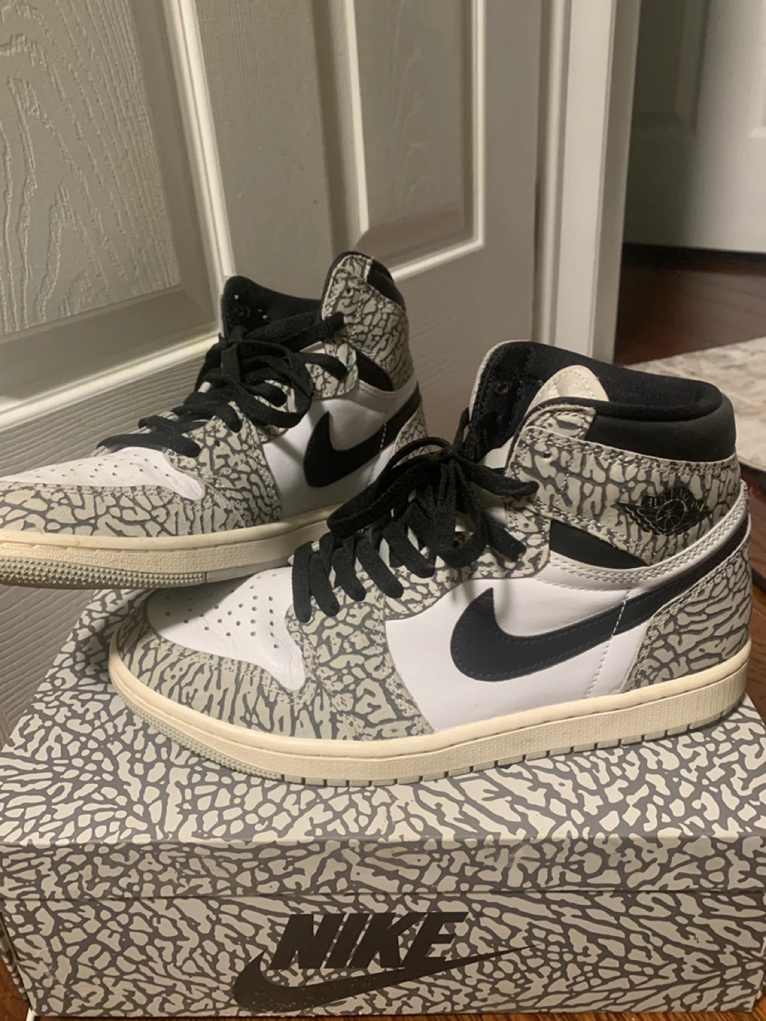 Selling a pair of Nike Air Jordan 1 High Element Gore-Tex in the 'Light Bone' colourway! These shoes feature a unique elephant print design and are perfect for adding a stylish touch to your wardrobe. The box is included!