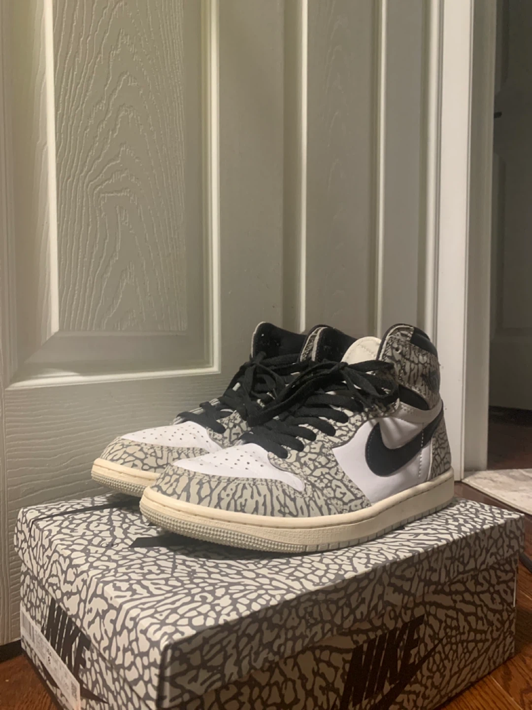 Selling a pair of Nike Air Jordan 1 High Element Gore-Tex in the 'Light Bone' colourway! These shoes feature a unique elephant print design and are perfect for adding a stylish touch to your wardrobe. The box is included!