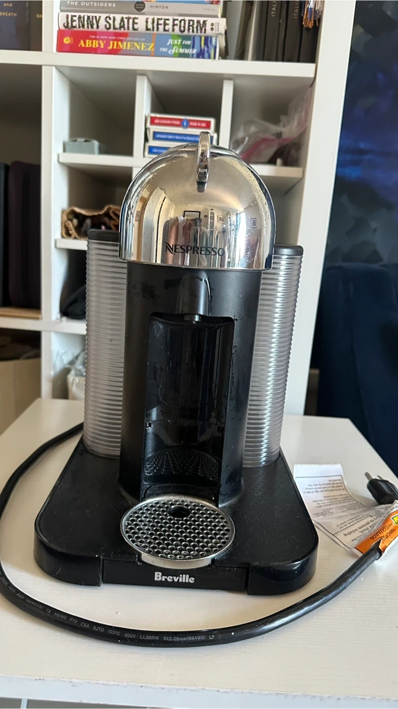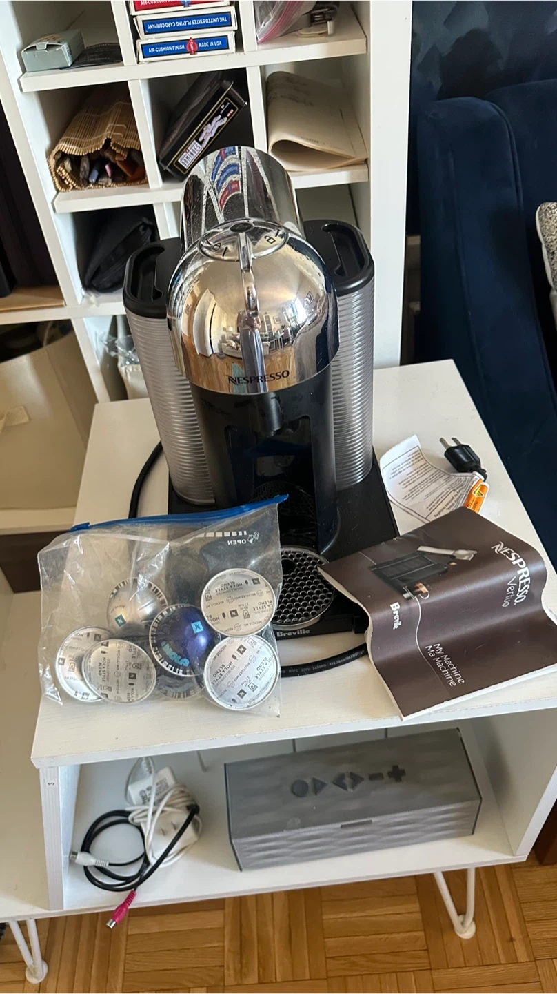 Selling a Nespresso Vertuo Next coffee maker made by Breville. It's in great condition and ready to make delicious coffee! Comes with some coffee pods to get you started and the original instruction manual