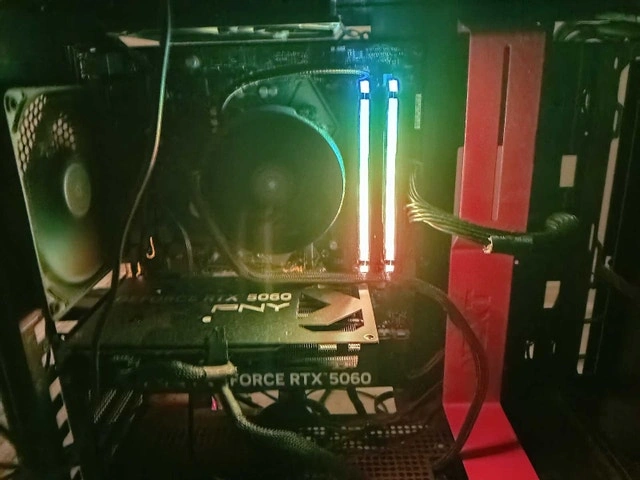 Used gaming PC featuring a PNY GeForce RTX 5060 graphics card, perfect for gaming at high settings. The PC has been well-maintained and is in good working condition, ready for its next owner.