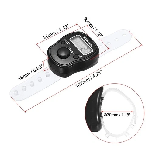 You will get 1 counter. Message me your preferred color. Keep track of your counts effortlessly with this versatile digital finger counter featuring a clear LED display. This convenient counter comes in a box set with multiple vibrant color options including pink, red, green, blue, purple, and white. The compact device features an easy-to-read digital display, a simple reset button for starting fresh counts, and an ergonomic design that fits comfortably in your hand. Perfect for tracking laps, attendance, inventory, or any counting needs, this counter makes tallying quick and accurate. Each counter comes in its own protective case and includes a reset function to clear the display. The large digit display ensures easy visibility, while the LED light helps with viewing in various lighting conditions. This set makes an ideal gift for coaches, teachers, event organizers, or anyone needing a reliable counting solution. The durable construction and user-friendly interface make it a practical tool for both professional and personal use.