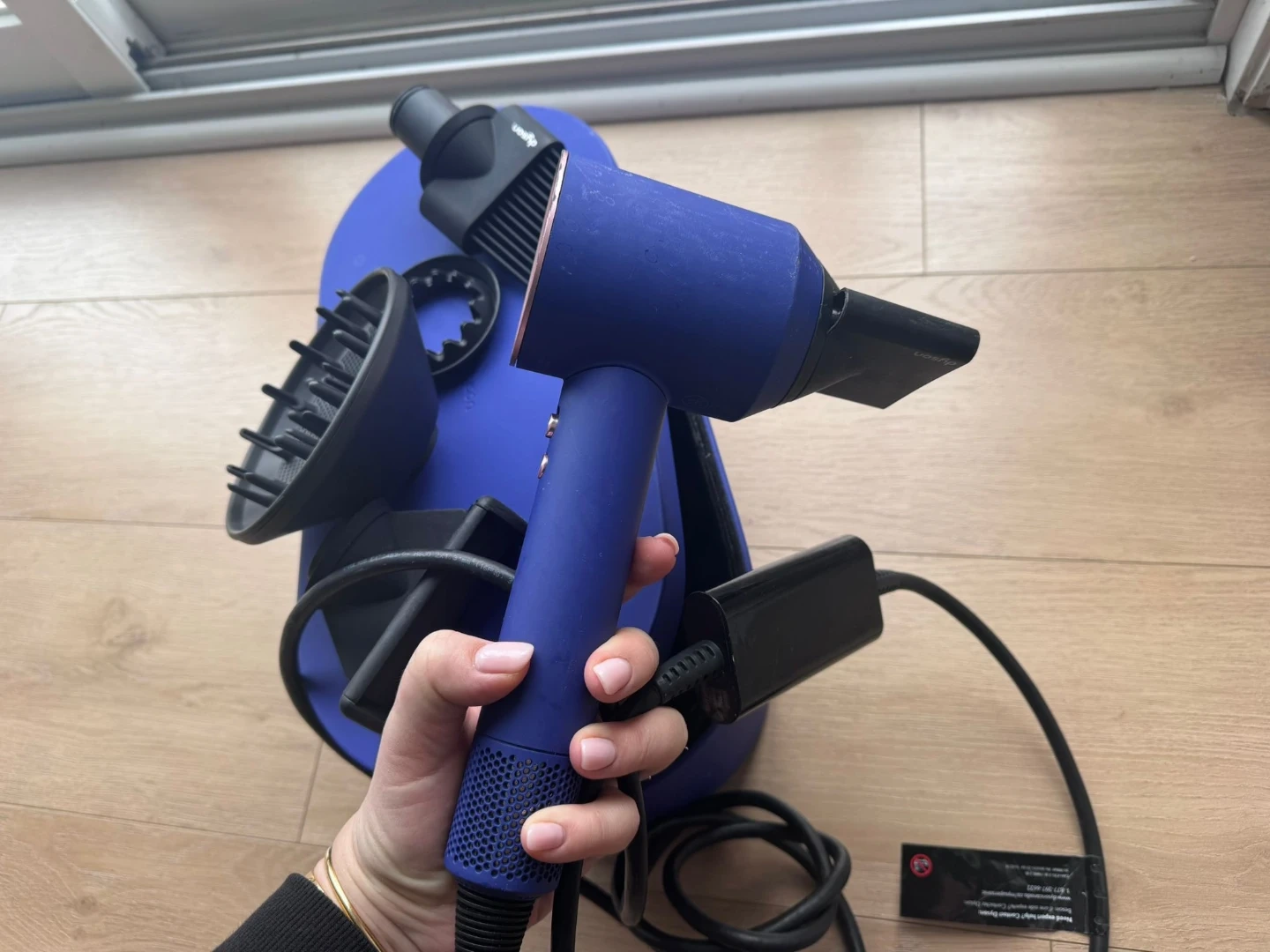 Selling a Dyson Supersonic hair dryer in blue and pink! It comes with all the attachments and the original box. It's in great condition and ready for a new home. It is lightweight and portable