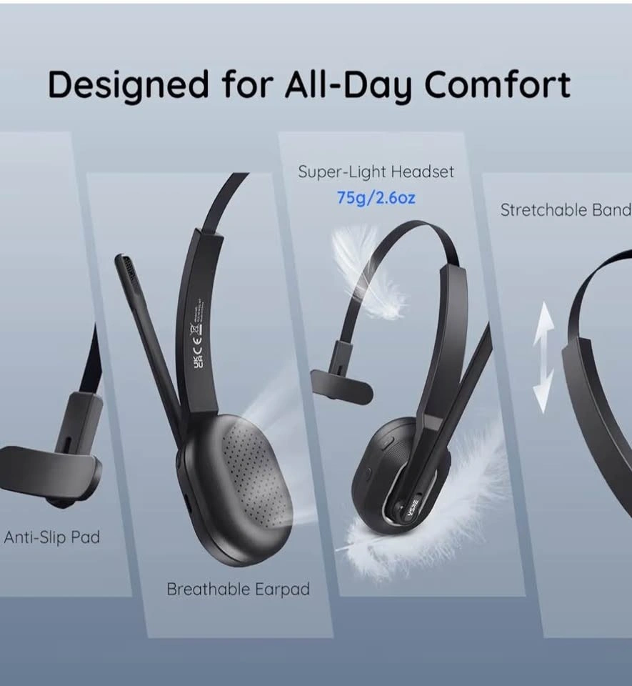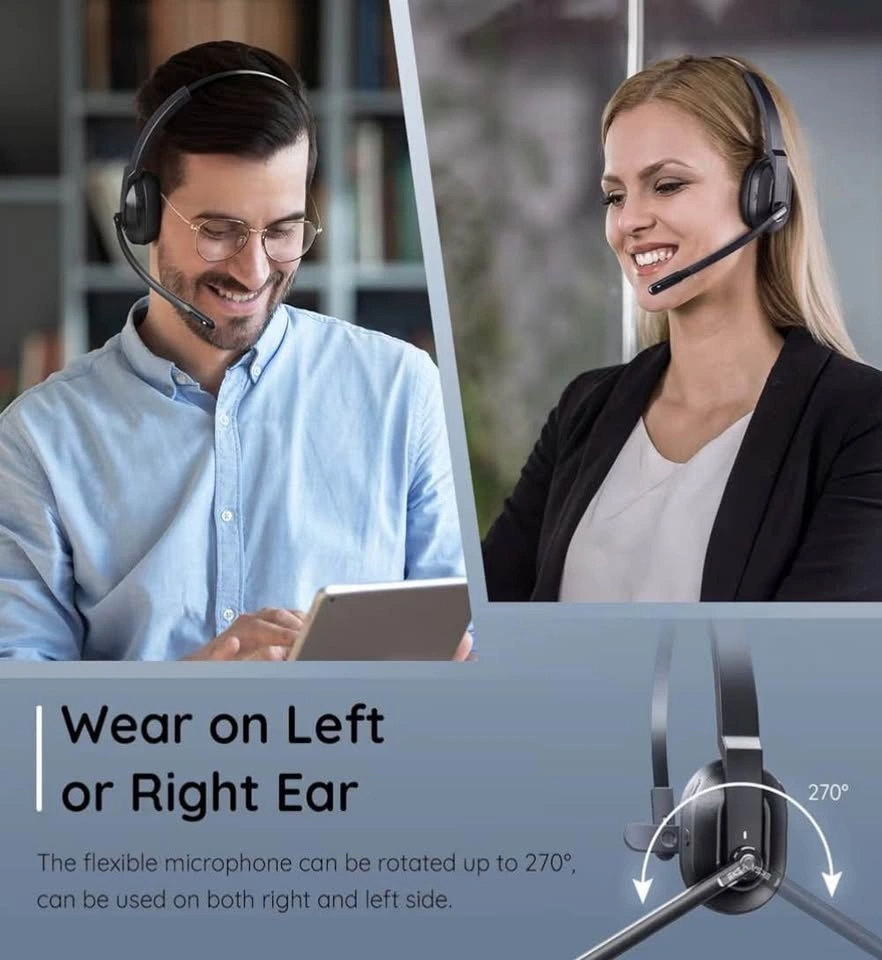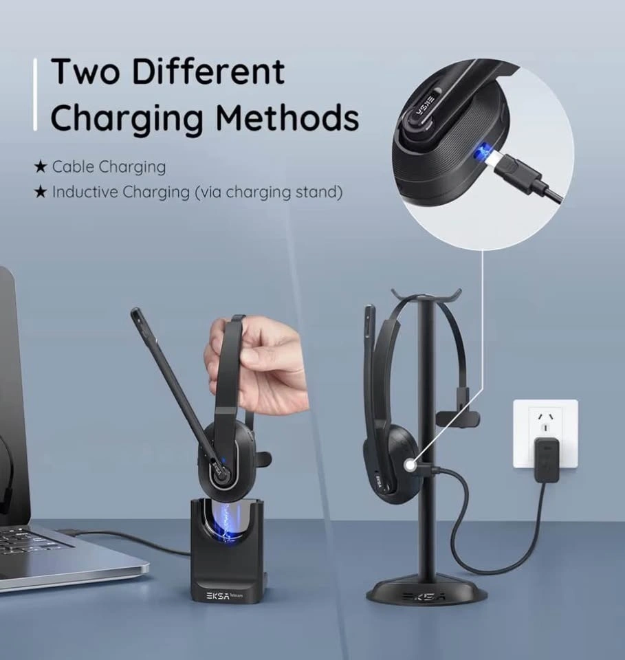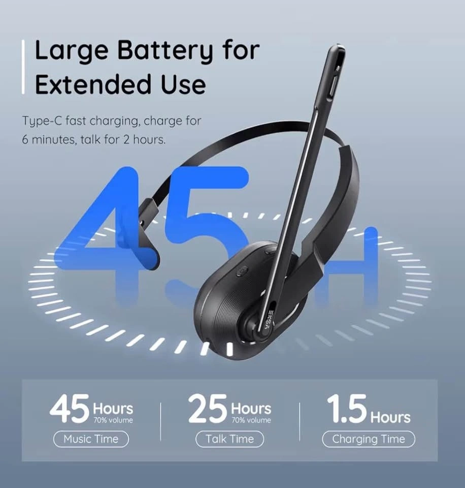 EKSA Bluetooth Headset – 45H Battery, Noise Cancelling Mic, USB