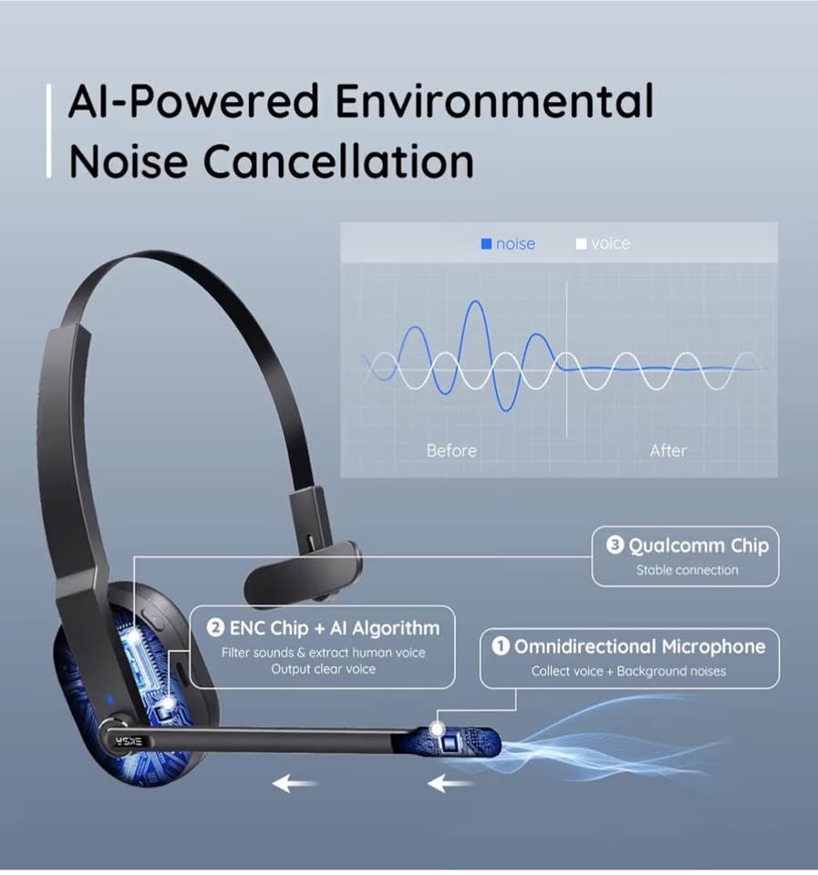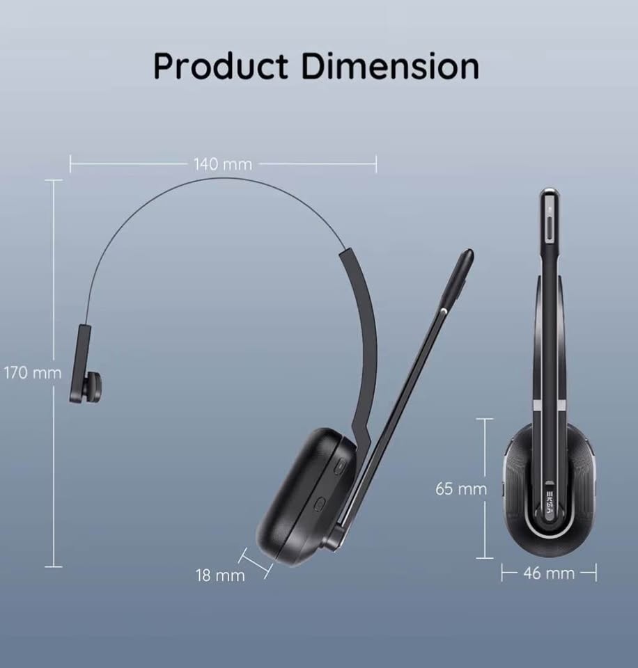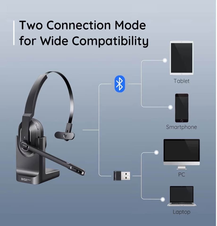 EKSA Bluetooth Headset – 45H Battery, Noise Cancelling Mic, USB