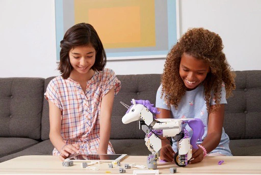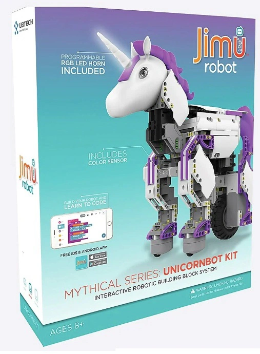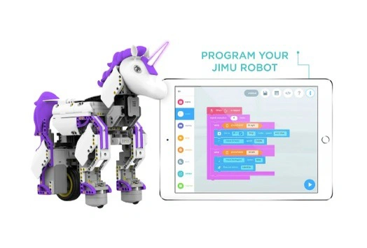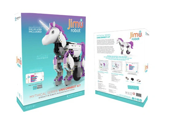 This enchanted UnicornBot kit has everything needed to create a buildable, codable robot or invent your own. Download the FREE JIMU app that has step-by-step, 3D, 360 degree instructions. The fun is extended with the Blockly coding platform, allowing kids to build and code this legendary creature. UnicornBots are real -- build, code and share one today!
