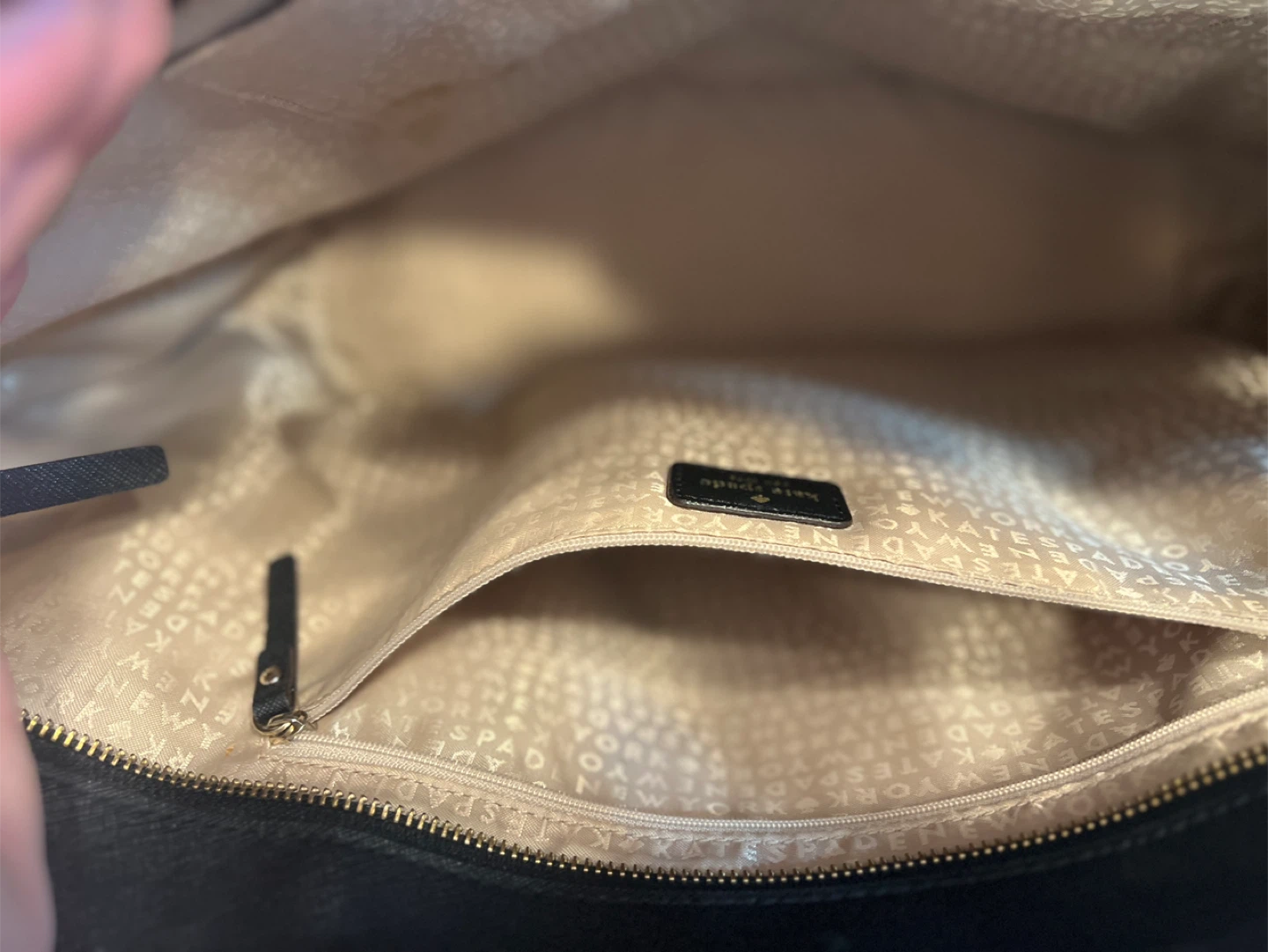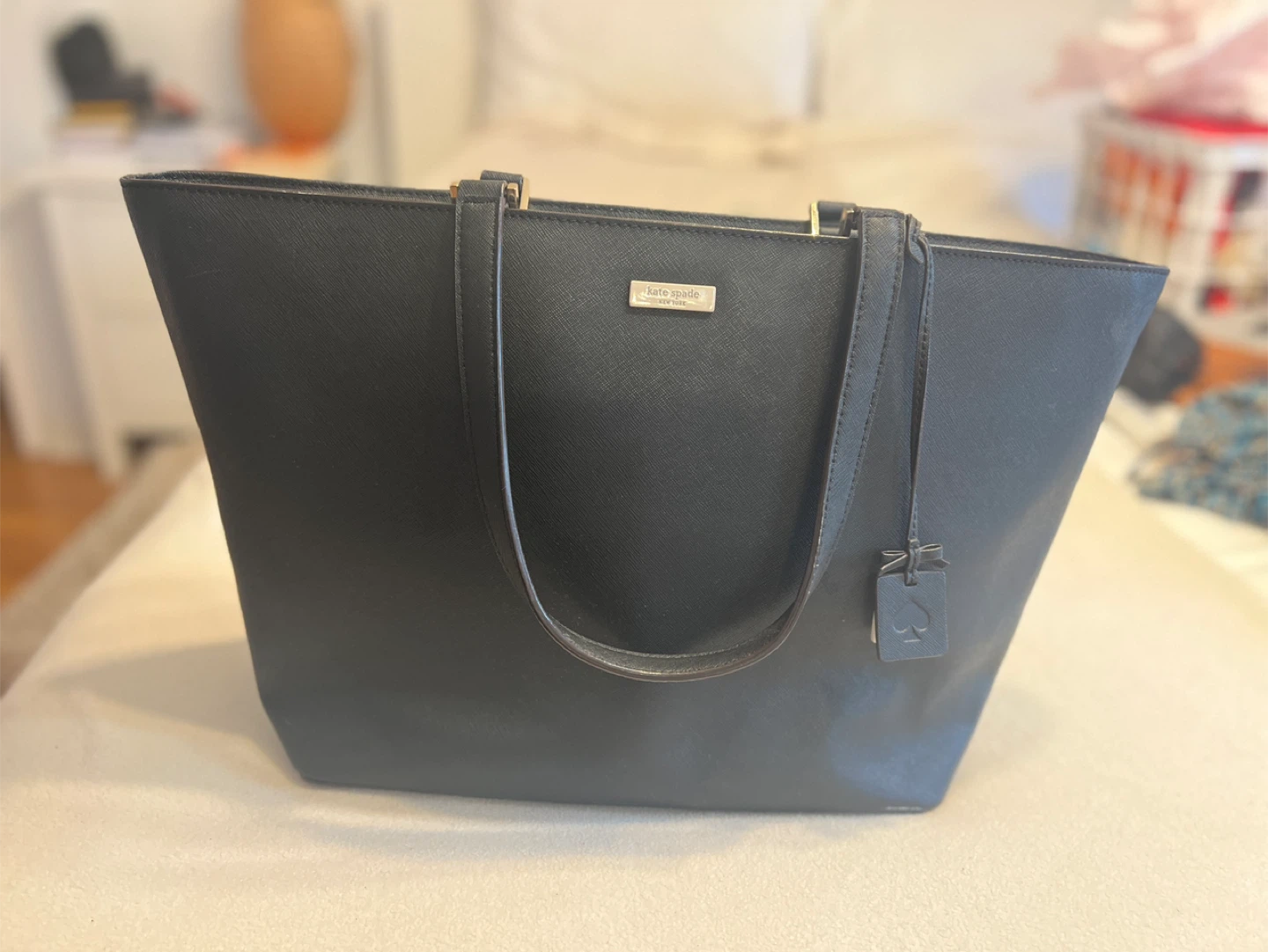 Selling a Kate Spade tote bag in black! It's in great condition and perfect for everyday use. The interior lining has the Kate Spade logo. Comes with the original dust bag