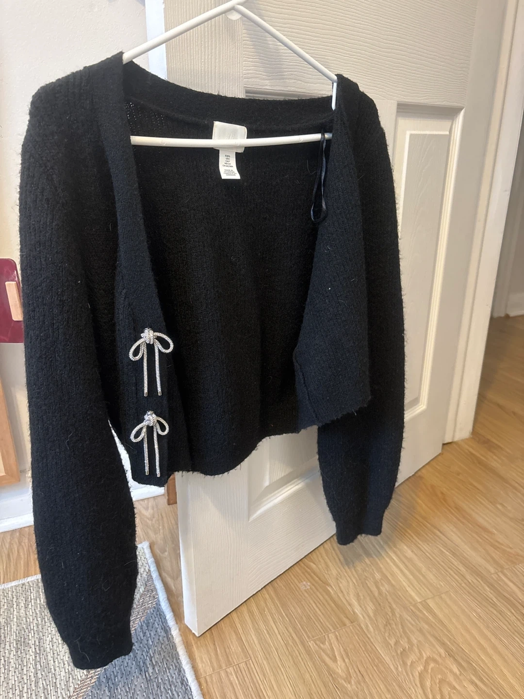 Buy & SellH&M Black Cardigan with Bow DetailH&M Black Cardigan with Bow Detail$10Worn a few times- slight piling on the sleeves Size smallConditionGoodSizeSmallBrandH&MWHERE TO MEETMarie CurtisView MapSELLERChelseaamarieeLong Branch261 review0 chats·1 favorites·9 viewsSEND CHAT TO SELLERHi Chelseaamariee! I’m interested in your listing.Hi Chelseaamariee! I ’m interested in your listing.Get the Karrot app to chatSign In to chat