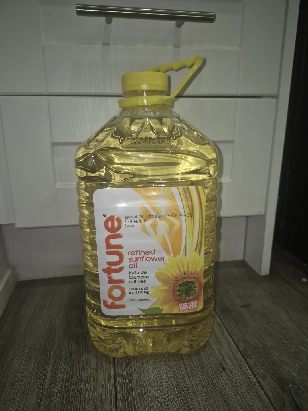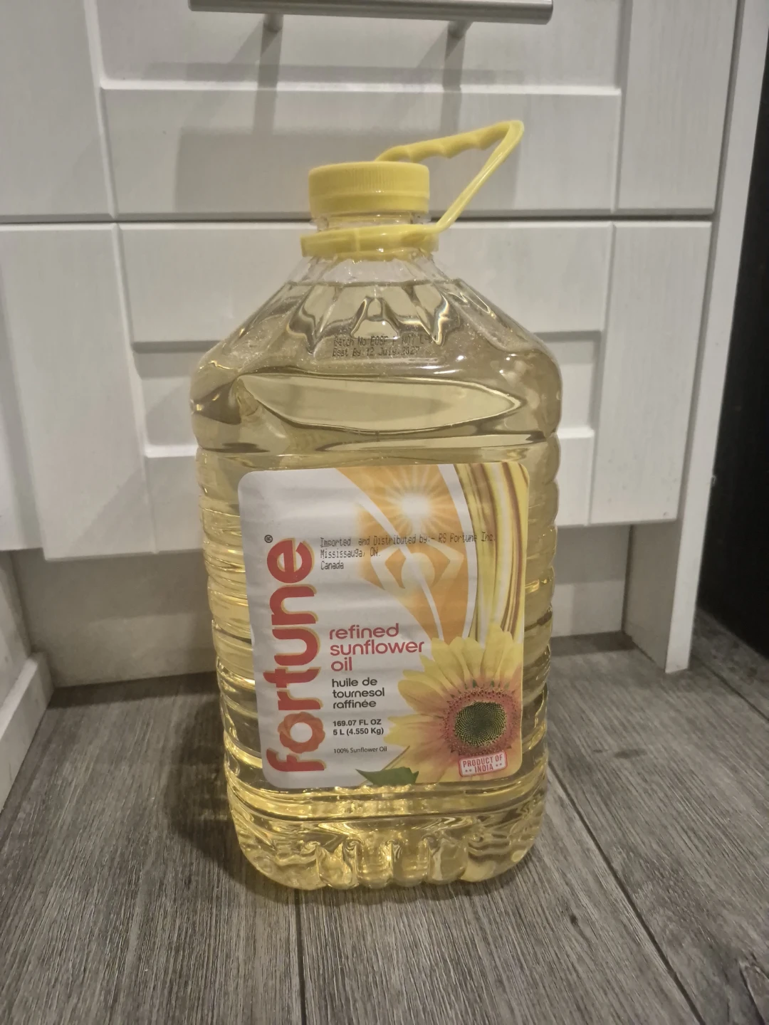 Fortune refined sunflower oil comes in a 5 L bottle. It's made with 100% sunflower oil. This is a great staple for any kitchen! Never used.