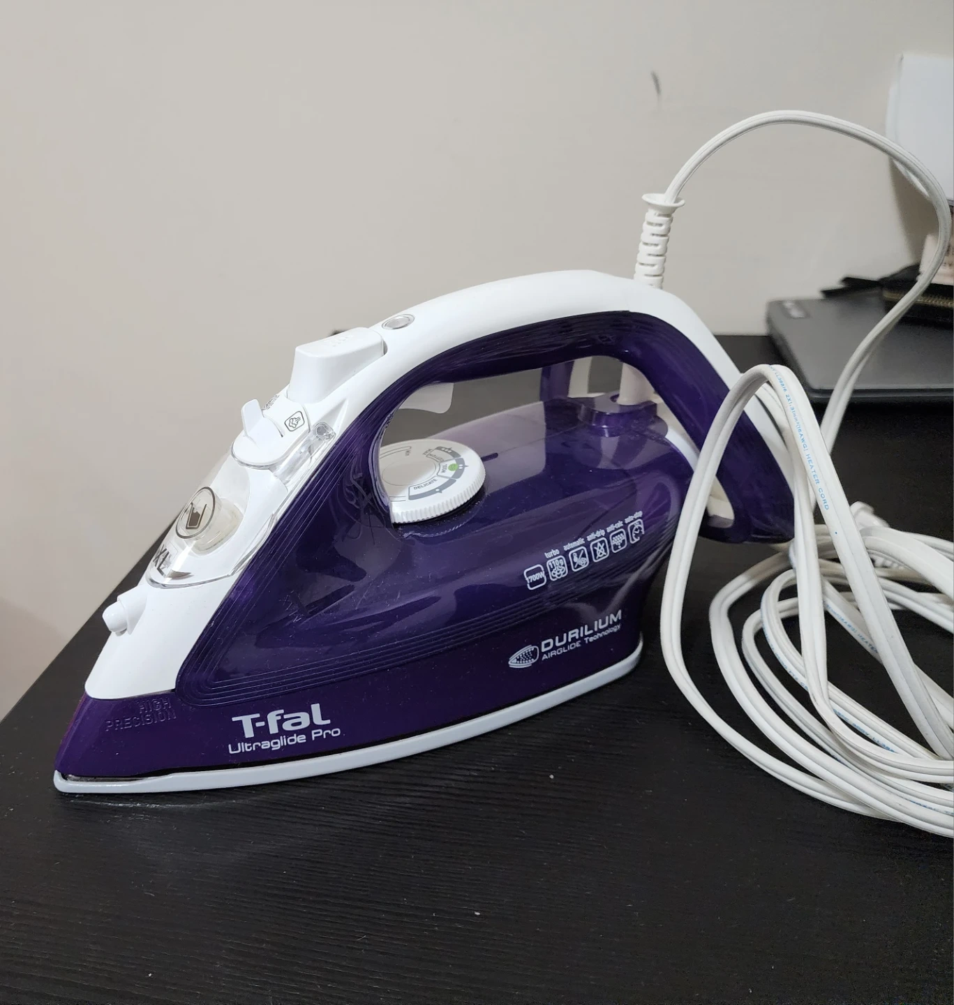 This is a T-fal Ultraglide Pro iron. It has Durilium Airglide Technology. Features include turbo steam, automatic shut-off, and anti-drip functions.