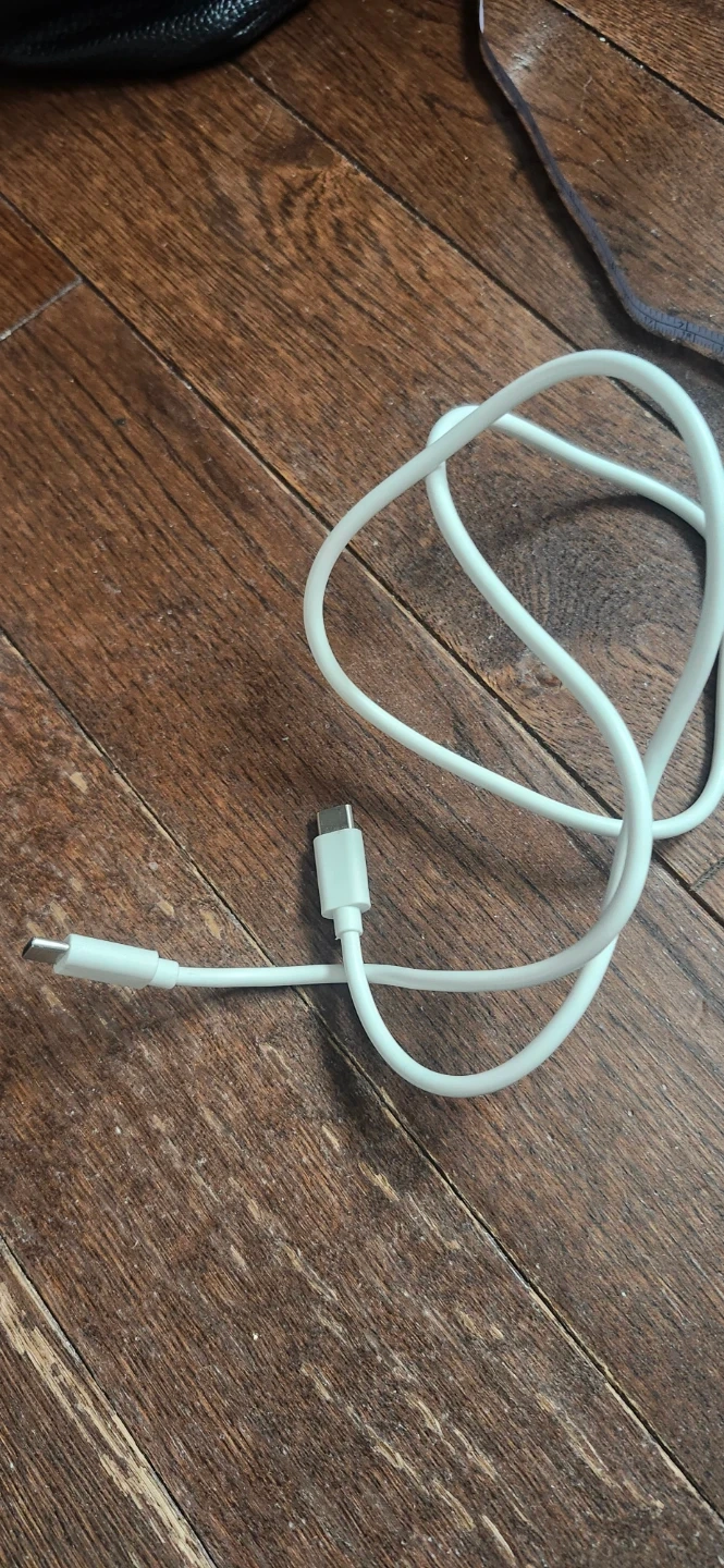 This is a white USB-C to USB-C charging cable. It's about 3 feet long. It's useful for charging newer phones and laptops.