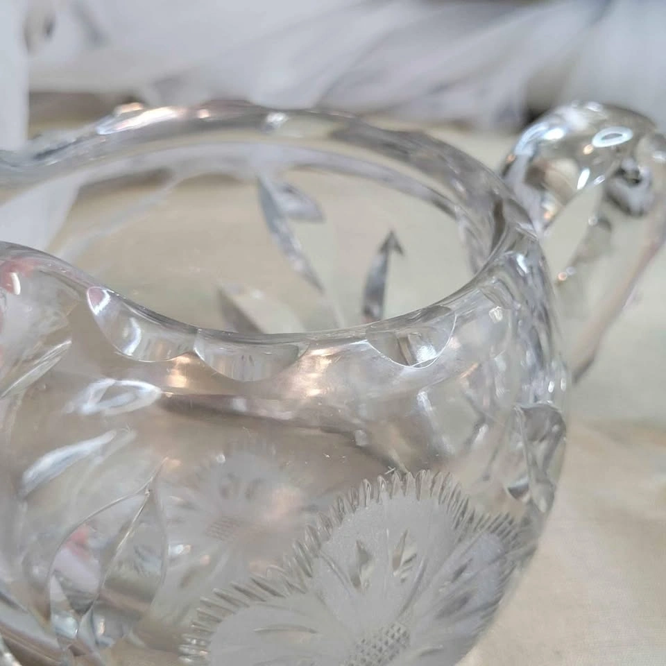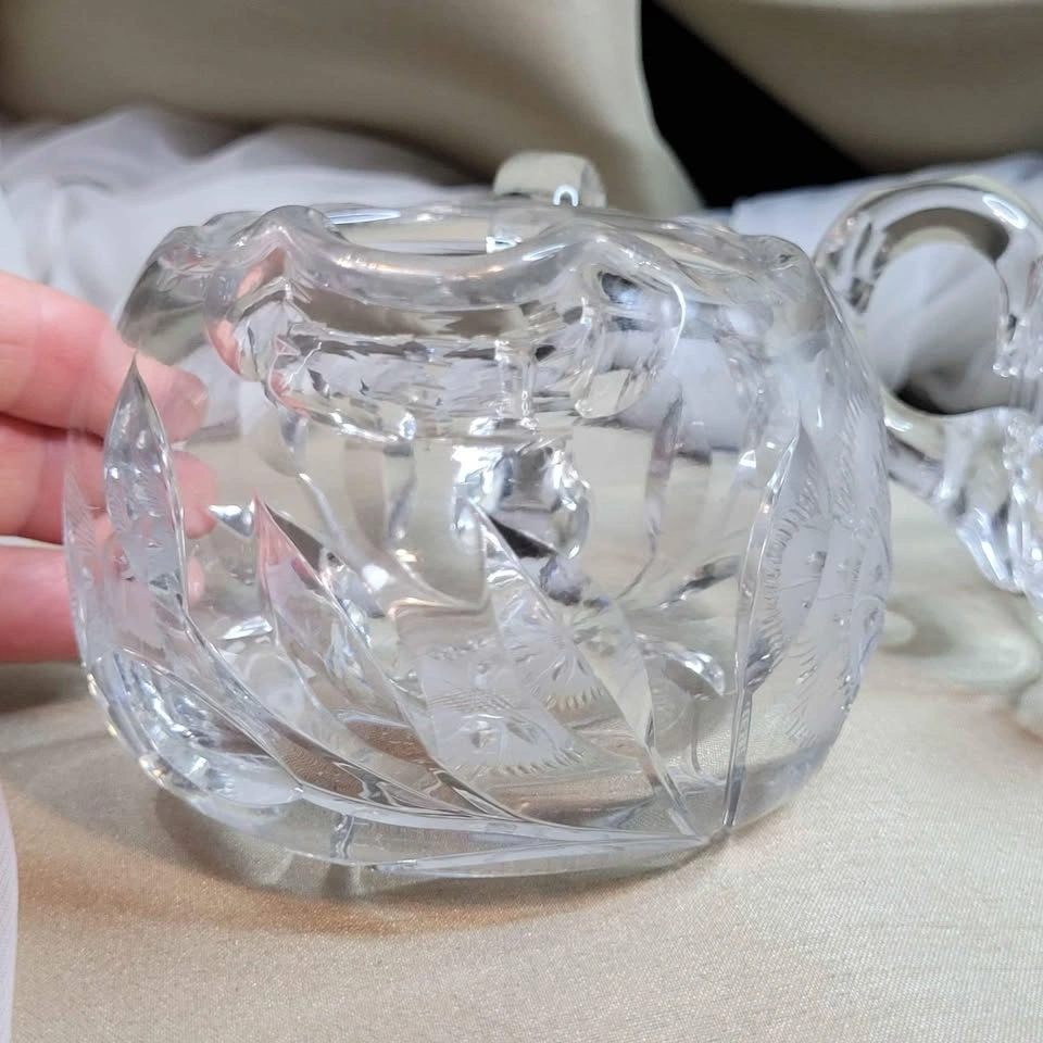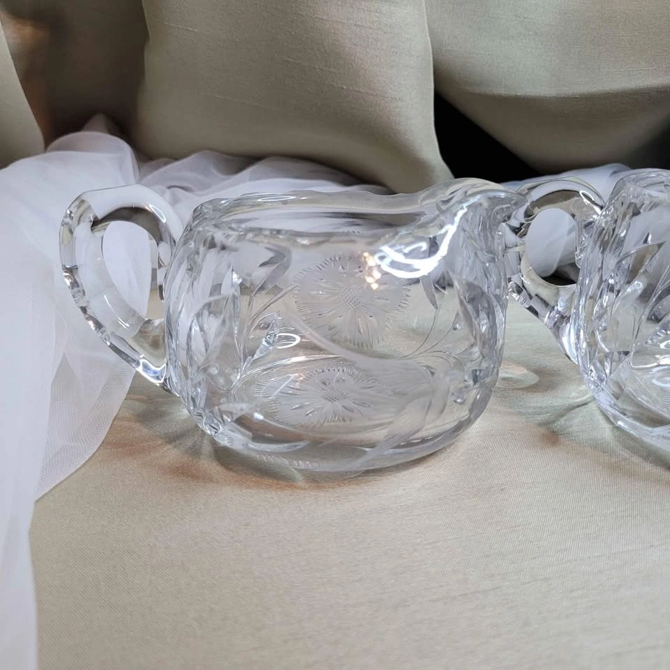 Beautiful Vintage Etched Crystal Cream & Sugar Set. Excellent condition, no chips, no cracks. Please see all pictures. Located in Bradford - can meet. Please see all my other items. Thank you for looking!