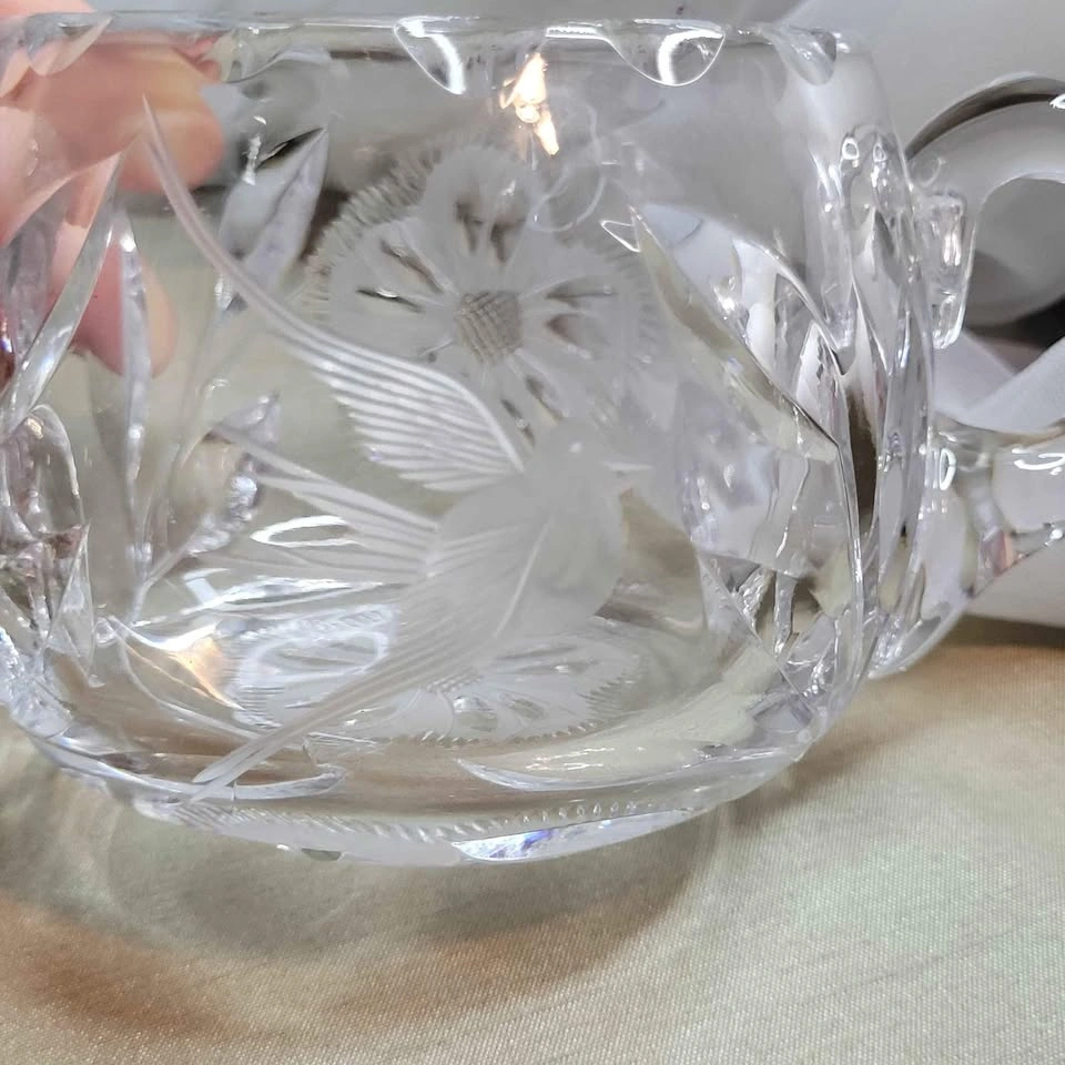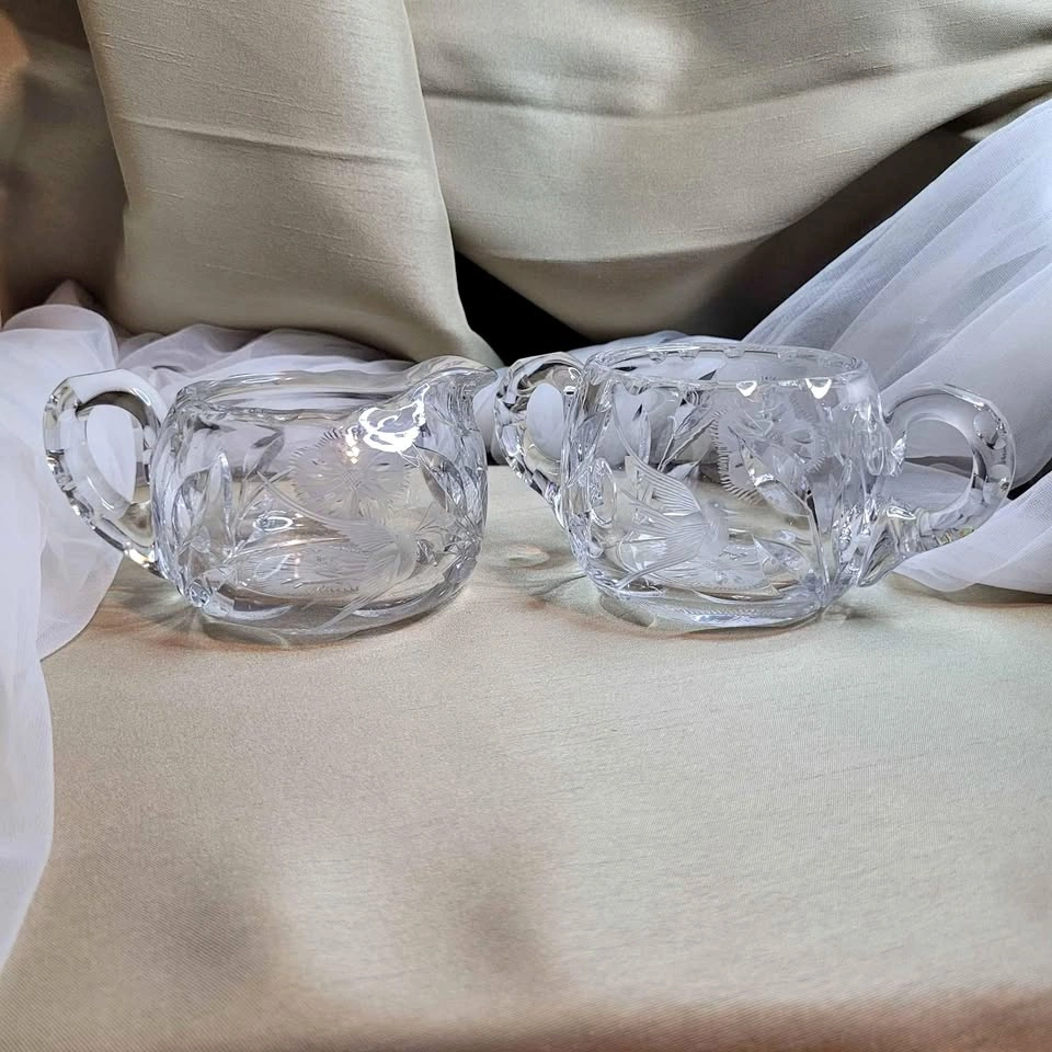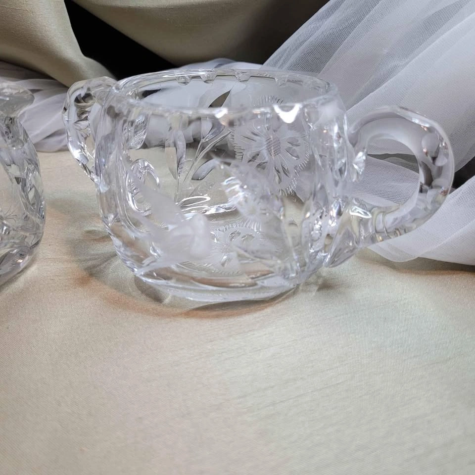 Beautiful Vintage Etched Crystal Cream & Sugar Set. Excellent condition, no chips, no cracks. Please see all pictures. Located in Bradford - can meet. Please see all my other items. Thank you for looking!