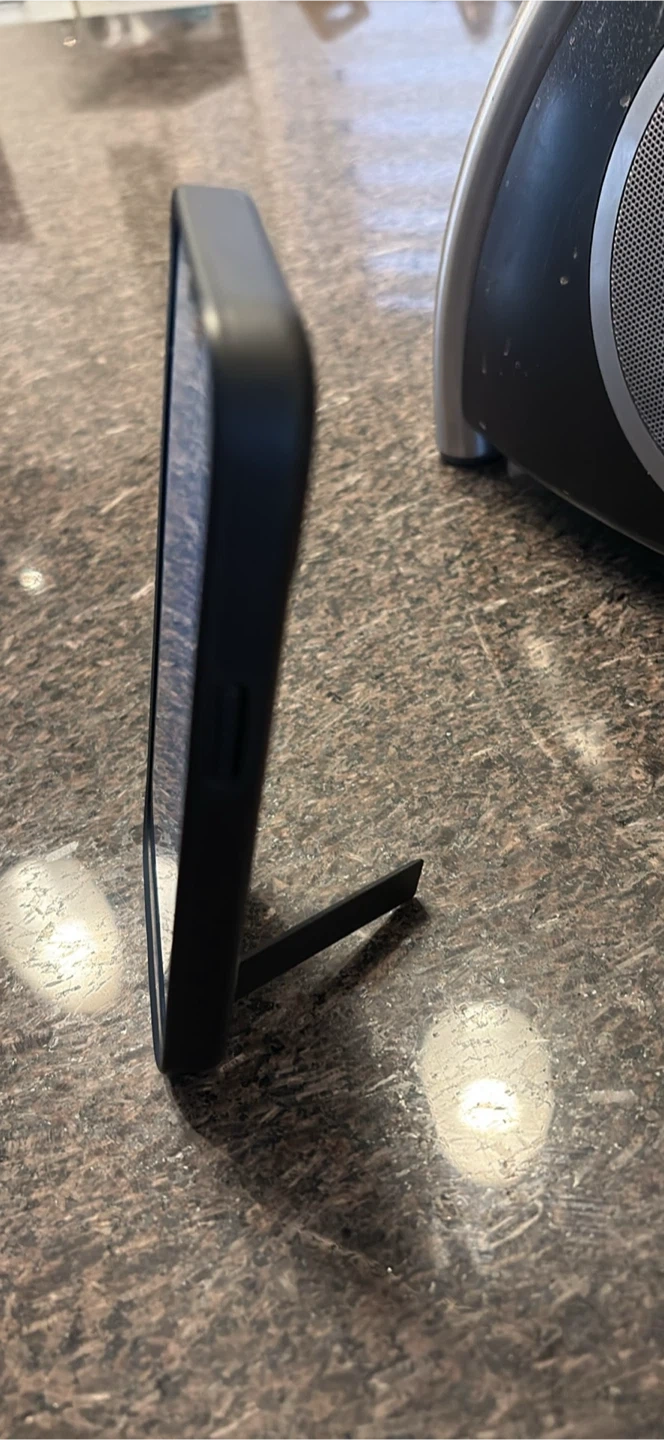 Has always been in the case and I replaced the glass screen protector a few days ago. Comes with a stand up case.