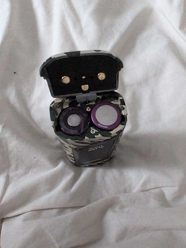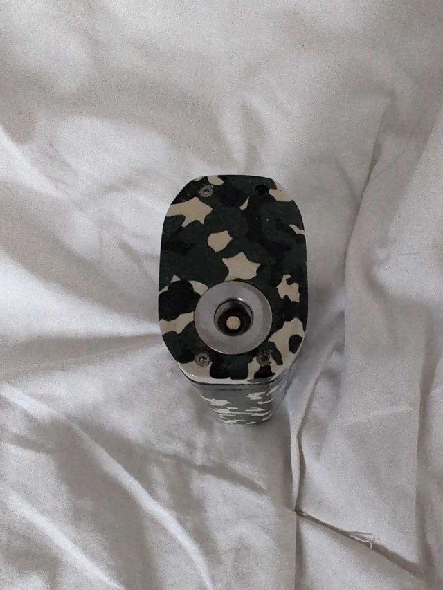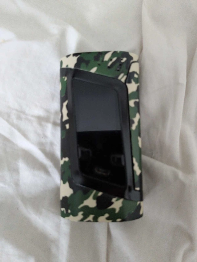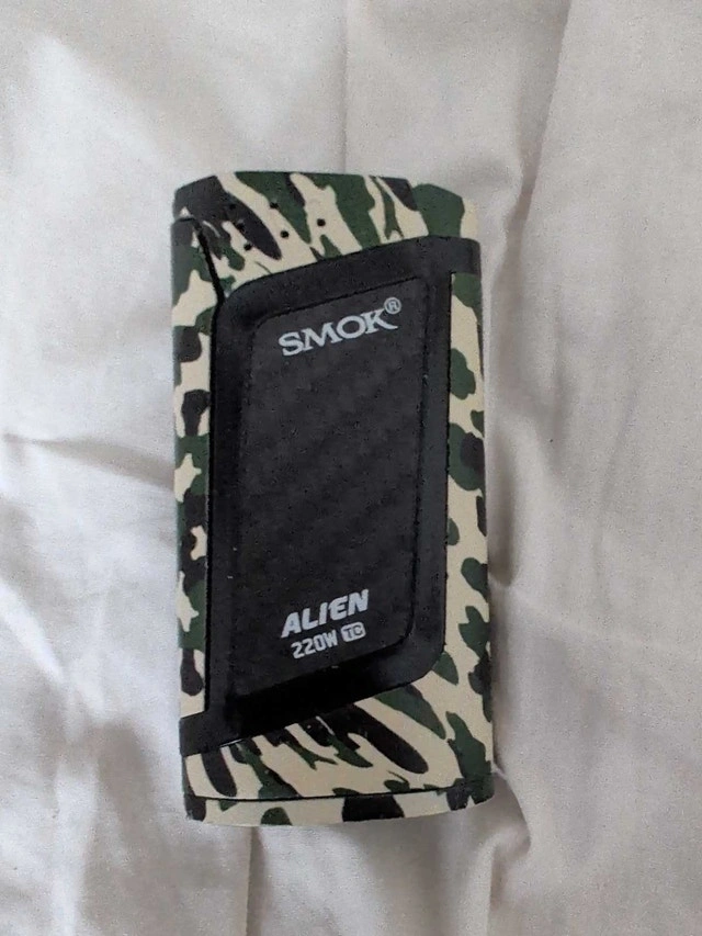 Selling a used Smok Alien 220W vaping device in a camouflage design. This is a powerful and reliable mod for vaping enthusiasts. It's in fair cosmetic condition with some signs of use, but it functions perfectly. A great option for someone looking for a dependable device. It's been a trusty companion, but it's time for someone else to enjoy it.