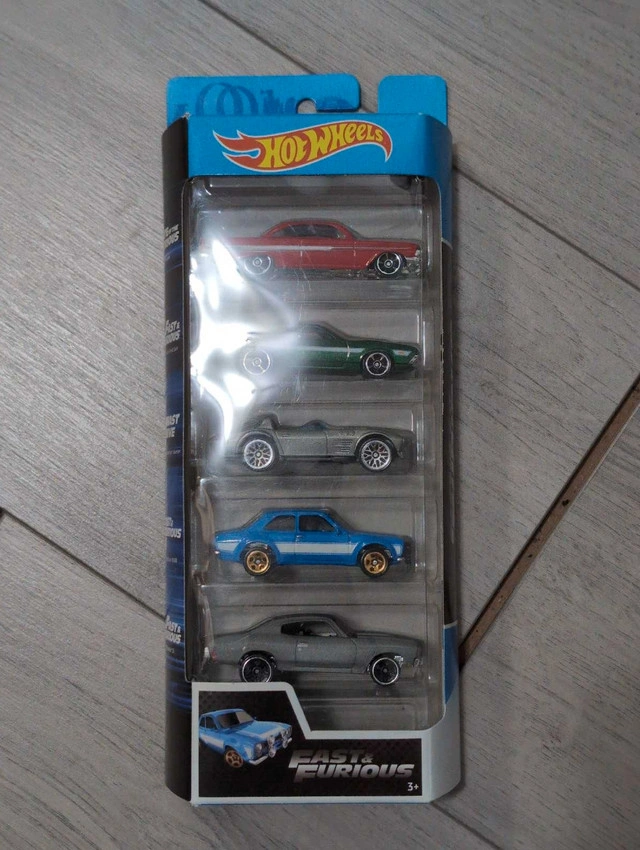 Get ready to rev your engines with this brand new Hot Wheels Fast & Furious 5-Pack, featuring a collection of iconic cars from the blockbuster movie franchise! This set includes five meticulously detailed die-cast vehicles that capture the essence of speed and style from the Fast & Furious films. Perfect for collectors and fans alike, this pack is a must-have addition to any Hot Wheels or movie memorabilia collection. Key Features: * Includes 5 unique Hot Wheels cars from the Fast & Furious series. * 1:64 scale die-cast vehicles with authentic details. * Officially licensed Hot Wheels product. * Perfect for collectors, kids, and Fast & Furious fans. Don't miss out on the chance to own this awesome Hot Wheels Fast & Furious 5-Pack. If the ad is up, the item is available!