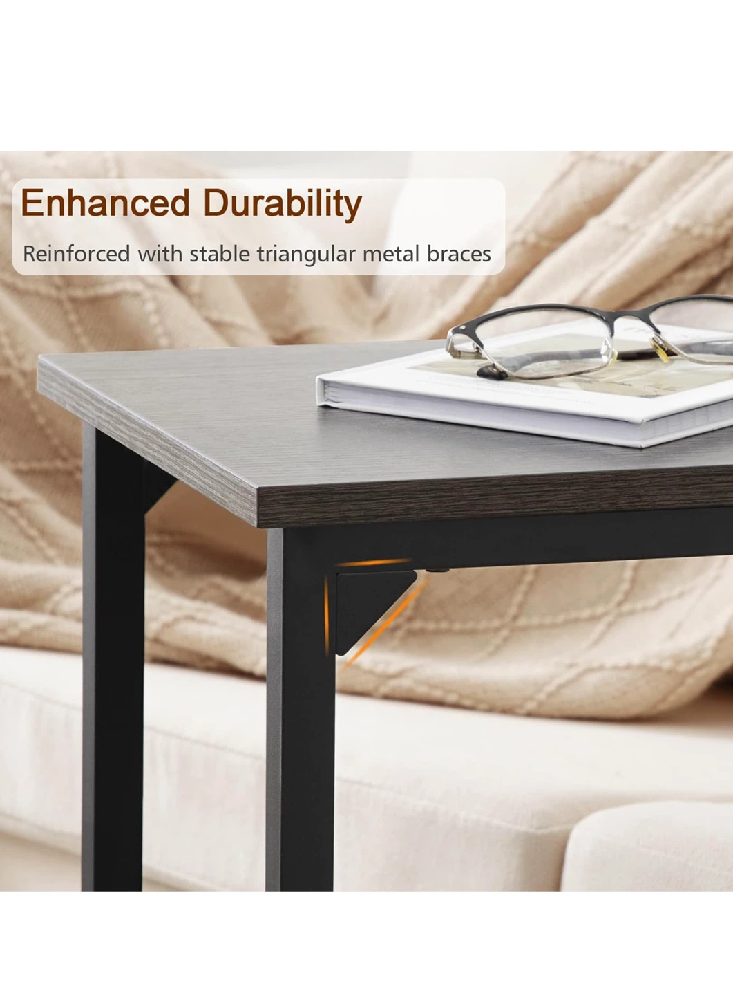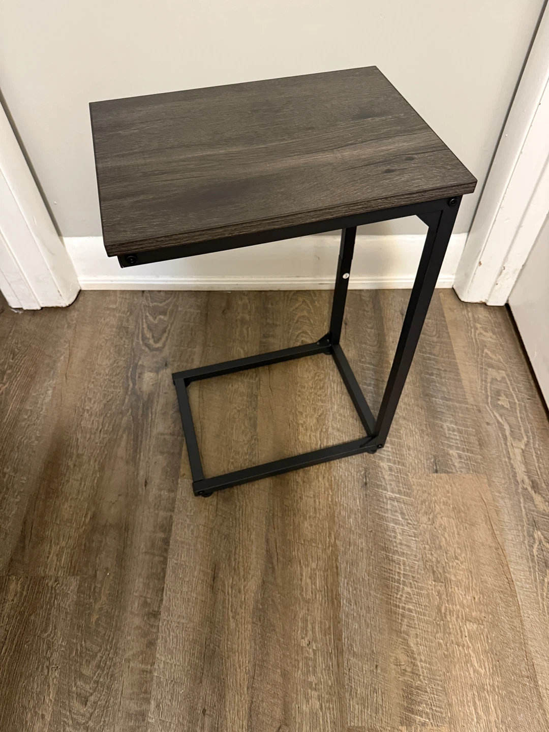 This C-shaped end table is perfect for small spaces! It's great for using next to a couch or bed.