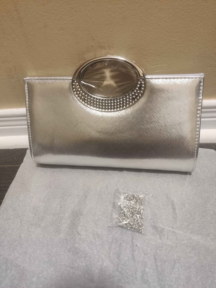 Brand new silver glitter luxury party evening bag for women