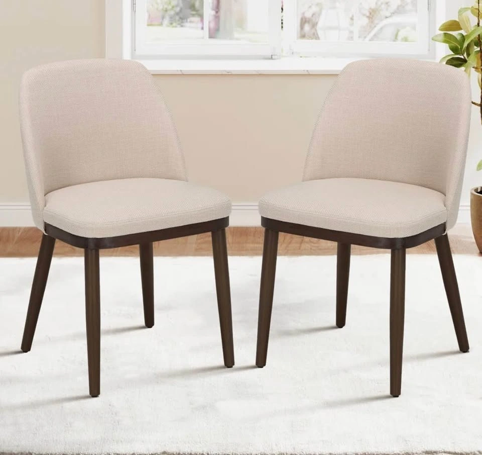 WF-3100 Beige Upholstered Solid Wood Dining Chairs - Set of 2