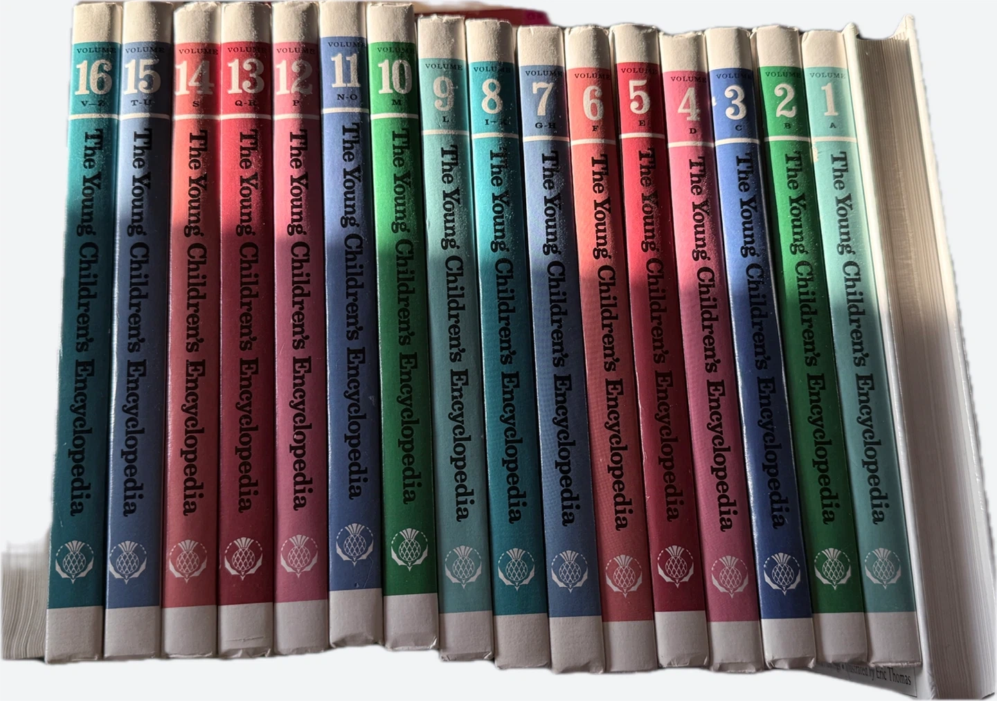 Britannica's The Young Children's Encyclopedia. This set contains multiple volumes, each covering different letters and topics. A great educational resource for young learners!