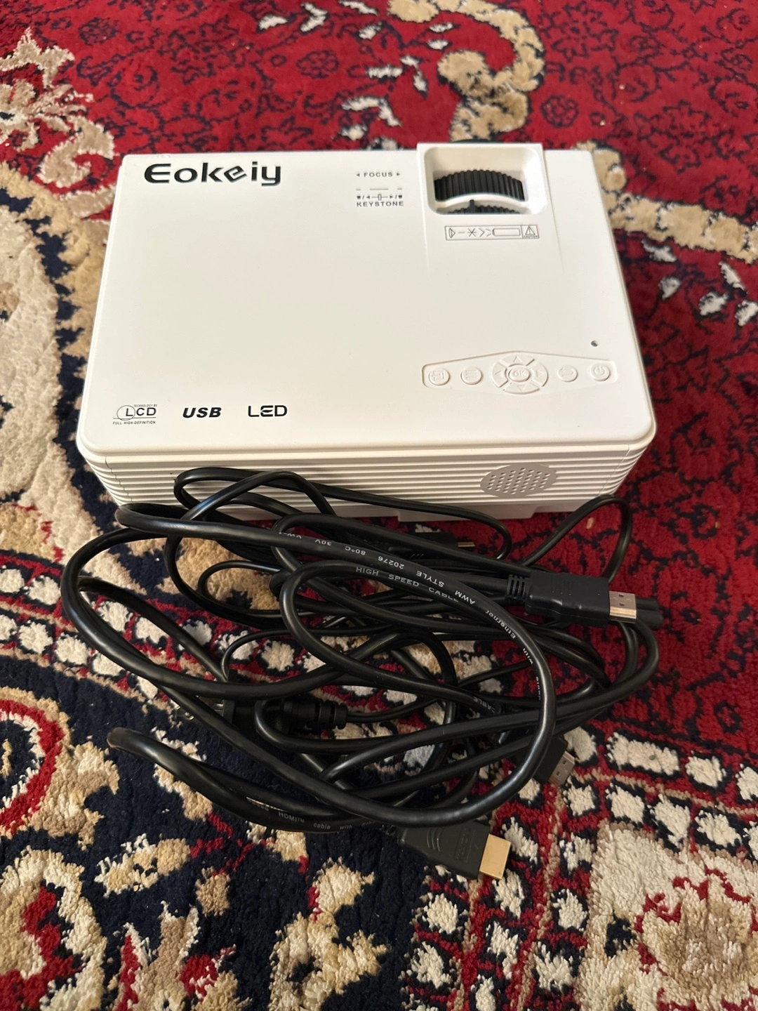 Selling an Eokeiy projector. It comes with a simple projection screen, the box and cables are included. Great for movie nights or presentations!