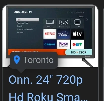 Buy & SellOnn. 24" 720p HD Roku Smart TVOnn. 24" 720p HD Roku Smart TV$70Onn. 24-inch smart TV with Roku built-in. HD resolution at 720p. This TV has a built-in Roku interface for streaming.BrandOnn.WHERE TO MEETCheck LocationView MapSELLERhaidenGlenview100 reviews0 chats·0 favorites·13 viewsSEND CHAT TO SELLERHi haiden! I’m interested in your listing.Hi haiden! I’m interested in your listing.Get the Karrot app to chatSign In to chat
