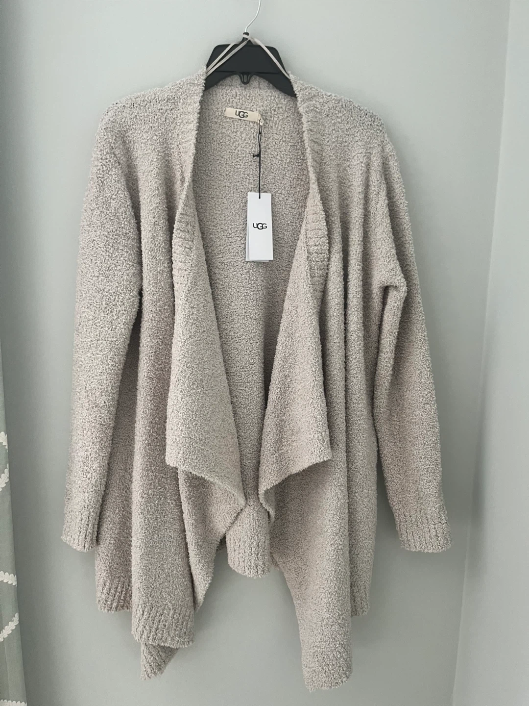 Buy & SellUGG Cozy CardiganUGG Cozy Cardigan$60A cozy UGG cardigan in a soft, textured knit. It features a relaxed fit with a draped open front. Perfect for lounging or layering on chilly days!ConditionNewSizeMBrandUGGWHERE TO MEETCredit Landing PlazaView MapSELLERverifiedLaraLorne Park1074 reviews0 chats·0 favorites·7 viewsSEND CHAT TO SELLERHi Lara! I’m interested in your listing.Hi Lara! I’m interested in your listing.Get the Karrot app to chatSign In to chat