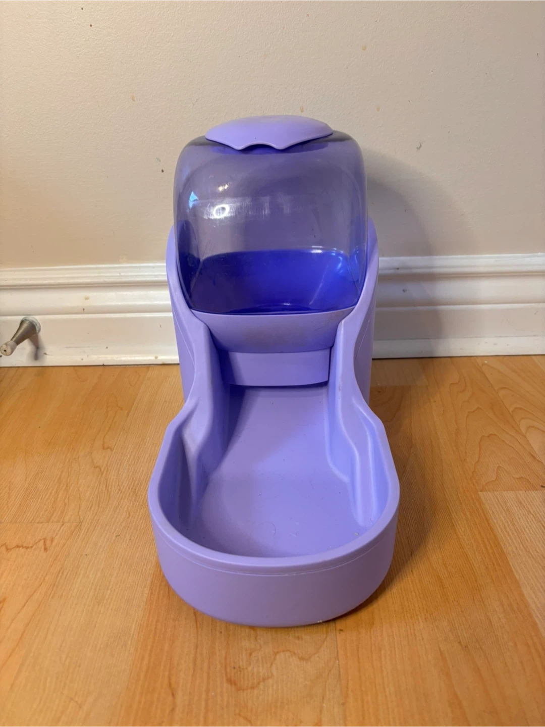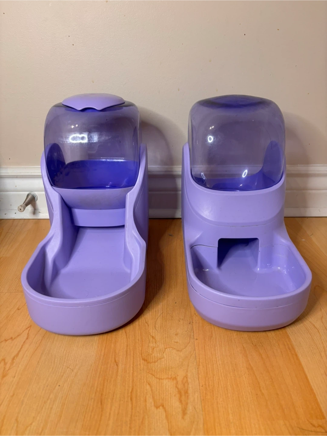 $15 or best offer - Purple gravity-fed pet food & water dispenser set, suitable for cats or small dogs. Simple, no-electric design automatically refills the bowl as your pet eats or drinks. Easy to clean and great for daily use or short trips away.